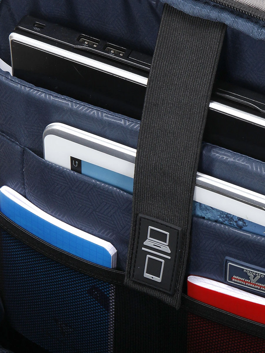 Le sac antivol Roncato Defend L possède un grand compartiment pouvant accueillir des documents A4, des revues scientifiques ou des livres techniques, par exemple. Ses 2 poches matelassées munies d’une patte de maintien à attache velcro permettent de transporter avec soin un ordinateur jusqu’à 17 pouces et une tablette. Ses nombreuses poches permettent de sérier des câbles d’alimentation, une power bank, des stylos, des petites fournitures de bureau… Sur les côtés, sous ses rabats, 2 discrètes petites poches sont présentes. Elles sont adaptées pour des clés ou un pass pour les transport. A l’arrière, une dernière poche est placée dans le bas de son dossier.