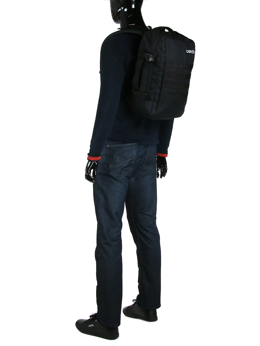 Le sac Cabinzero Military se transporte agréablement sur les épaules grâce à son panneau arrière matelassé, à ses bretelles moussées et à sa sangle de sternum ajustables. Ses multiples sangles réglables à taille permettent d’assurer un réel confort de portage y compris lorsque le sac est plein. Il peut aussi se porter à la main grâce à ses 2 poignées, haute et latérale, renforcées. Pour ajuster au mieux son volume en fonction de la charge, il est équipé de sangles de compression.