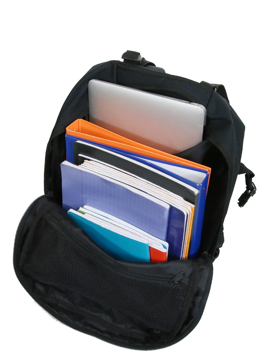 Le compartiment du sac ordinateur Cabinzero Military permet de transporter quelques vêtements, un ordinateur 16 pouces (dans une poche avec élastique de maintien) et diverses fournitures comme les cordons d’alimentation grâce à 2 poches zippées. Il est entièrement doublé pour protéger son contenu de l’humidité et des intempéries. Sa grande poche frontale à fermeture à glissière permet de laisser accessible certains effets personnels et/ou indispensables du voyage (titres de transport, etc.). Enfin, sa poche latérale extensible, grâce à un soufflet, est très pratique pour y placer une bouteille ou un parapluie.