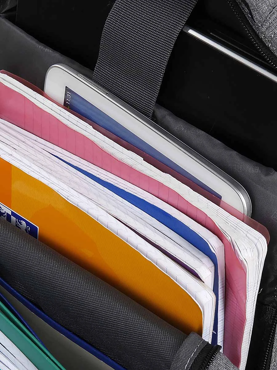 Le sac ergonomique New Rebels BTS permet d’organiser soigneusement les fournitures et accessoires grâce à ses trois compartiments. Le plus grand peut en effet accueillir les grands classeurs. Il comporte en prime deux poches matelassées : une pour l’ordinateur 15″ et une pour la tablette. Le deuxième compartiment est quant à lui parfaitement adapté pour les cahiers A4. Pour les accessoires et les petits cahiers de brouillon, le troisième compartiment semble tout indiqué. Il est équipé de trois poches plates dont deux rembourrées en polaire pour le téléphone, deux poches zippées et deux passants pour stylos. Deux poches frontales permettent de garder clefs, carte de transport, agenda et carte de cantine à portée de main. Pour la gourde et le parapluie, il dispose de deux poches latérales extensibles.