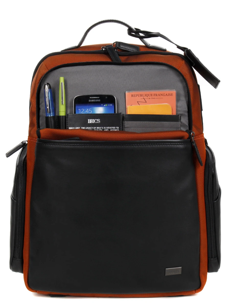 Le sac business Bric’s Monza dispose d’un aménagement intérieur très astucieux avec ses poches pour tablette et ordinateur 15.6 pouces, sa poche filet zippée pour cordons d’alimentation, ses multiples poches plates et à zip pour accessoires, ses emplacements pour carte de visite, ses passants pour stylo et son porte-clé. Ainsi, documents professionnels, affaires de travail et fournitures peuvent être sériés efficacement et sans difficulté. A l’extérieur, sa poche frontale et ses 2 poches latérales zippées offrent des solutions de rangement complémentaires pour les affaires devant rester accessibles et les ajouts de dernière minute. Pratique, pour les papiers d’identité notamment, son dossier est muni d’une poche secrète latérale zippée.