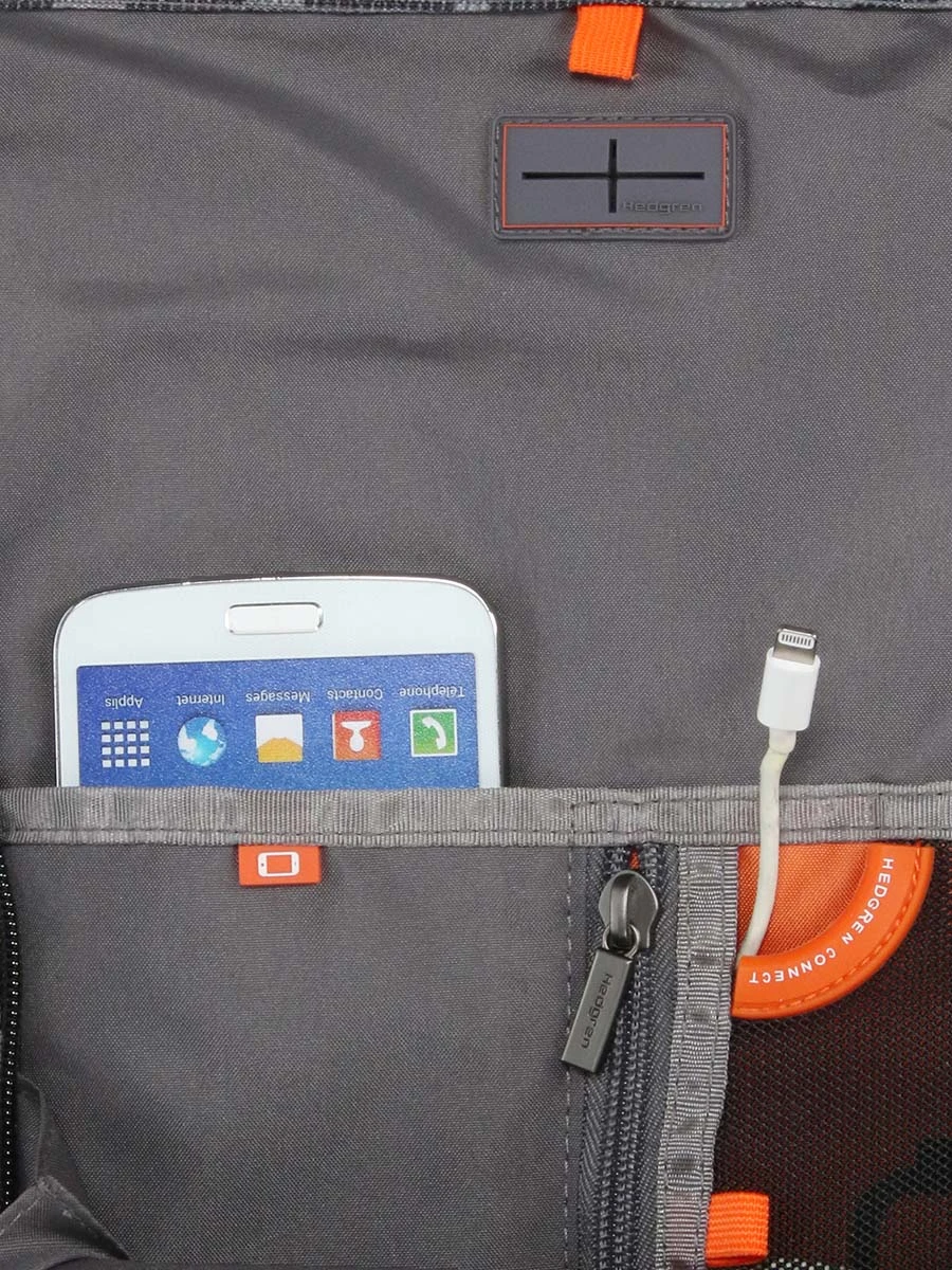 A l’extérieur, ce sac à dos ordinateur Hedgren Link Flap a tout pour plaire. En effet, il se complète de 2 poches frontales zippées, dont 1 bien organisée. Celle-ci comprend le passe câble et 1 poche pour placer la batterie et recharger ses appareils électroniques avec quiétude, ainsi qu’une poche pour le Smartphone des plus utiles. Elle se ferme à l’aide de zips latéraux.