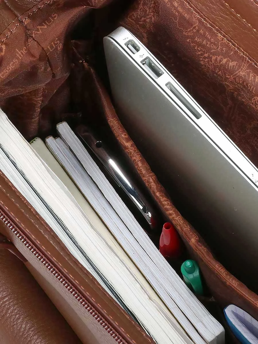 Le sac ordinateur Jump Uppsala Cuir Squarmouth dispose d’un compartiment muni d’une élégante doublure à imprimé mappemonde vintage. Là, une poche matelassée permet de transporter à l’abri des chocs une tablette ou un ordinateur jusqu’à 15 pouces. Documents A4, pochettes, revues techniques et classeurs peuvent également être rangés à l’intérieur. Une poche zippée, 2 poches plates, 2 passants pour stylos et une attache porte clés permettent de sérier certaines petites fournitures. A l’extérieur, 2 autres poches à fermeture à glissière constituent des alternatives de rangement complémentaires pour le téléphone, le portefeuille…