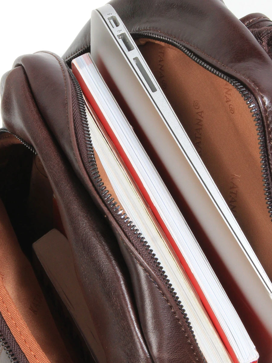 Le compartiment du sac à dos Katana Premium permet d’emporter quelques documents A4, des calepins à glisser dans l’une de ses 2 poches ouvertes, des accessoires multimédia à ranger dans sa poche zippée et un ordinateur jusqu’à 13 pouces dans sa poche matelassée. A l’avant, 2 grandes poches à fermeture éclair sont parfaites pour garder à portée de main effets personnels, téléphone, trousseau de clés… A l’arrière, une dernière poche est discrètement intégrée à son dossier.