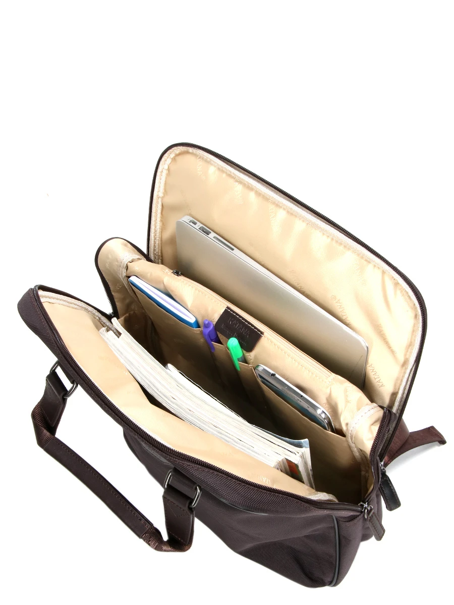 Le sac business Katana Urban Chic est doté de 2 grands compartiments doublés. Le premier permet d’accueillir un ordinateur 14 pouces avec aisance. Il est rembourré et assure à son usager une sécurité contre les chocs. Le second est notamment utile au rangement des téléphones (2 poches disponibles), des stylos dans des emplacements spécifiques, de quelques effets personnels dans une poche zippée et de quelques feuilles volantes si besoin. Les poches extérieures zippées peuvent être utilisées pour les affaires personnelles comme les pièces d’identité, paire d’écouteurs sans fil, petite bouteille d’eau et encas.
