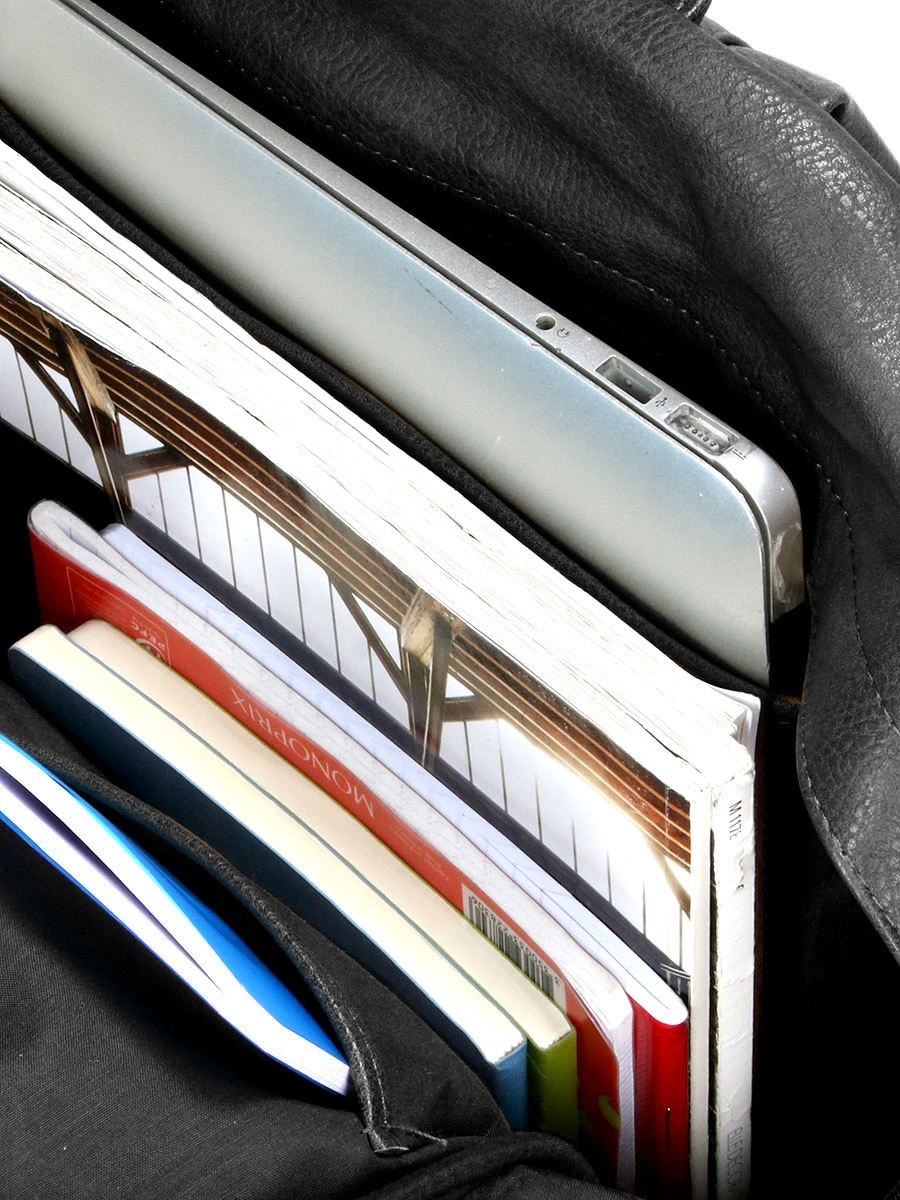 Côté rangement, le sac à dos Kinston Vintage Quentin offre un unique compartiment compatible avec le format A4. Là, des documents de travail, des affaires de cours ou une tenue de rechange peuvent trouver une place sans difficulté. Pour un ordinateur jusqu’à 13 pouces, une poche matelassée est présente. Ses 2 petites poches ouvertes et sa poche zippée permettent de sérier les câbles d’alimentation et les fournitures multimédia en tout genre. A l’avant, sa grande poche frontale à zip permet de garder sous la main le téléphone et la paire d’écouteurs, par exemple. Ses poches latérales permettent d’emporter une petite bouteille d’eau ou un parapluie. Une dernière poche discrètement intégrée à son dossier est idéale pour les papiers importants et les moyens de paiement que l’on souhaite tenir à bonne distance des mains indélicates des pickpockets.