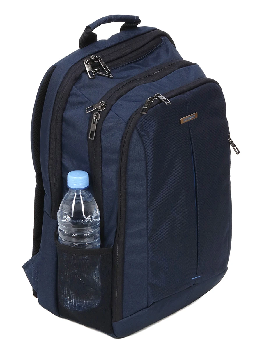 Pour sérier sans difficulté d’un côté les documents professionnels et de l’autre un ordinateur, le sac Samsonite Guardit 2.0 dispose de 2 compartiments zippés et doublés bien pensés. En effet, dans le premier, on trouve une grande poche filet à zip utile pour les cordons d’alimentation, par exemple, ainsi qu’une grande poche plate pour les feuilles volantes, etc. Dans le second, entièrement matelassé et disposant d’une grande poche plate, il est possible de glisser un ordinateur 15.6 pouces ainsi qu’une tablette, notamment. Dans sa poche frontale, de nombreuses poches permettent d’organiser le rangement d’accessoires et de fournitures de bureau comme les stylos, les petits carnets de note… Sur le dessus, une petite poche zippée avec doublure anti-rayure permet de garder accessible le téléphone ou une paire de lunettes. 2 poches latérales porte-bouteille complètent son offre de rangement.