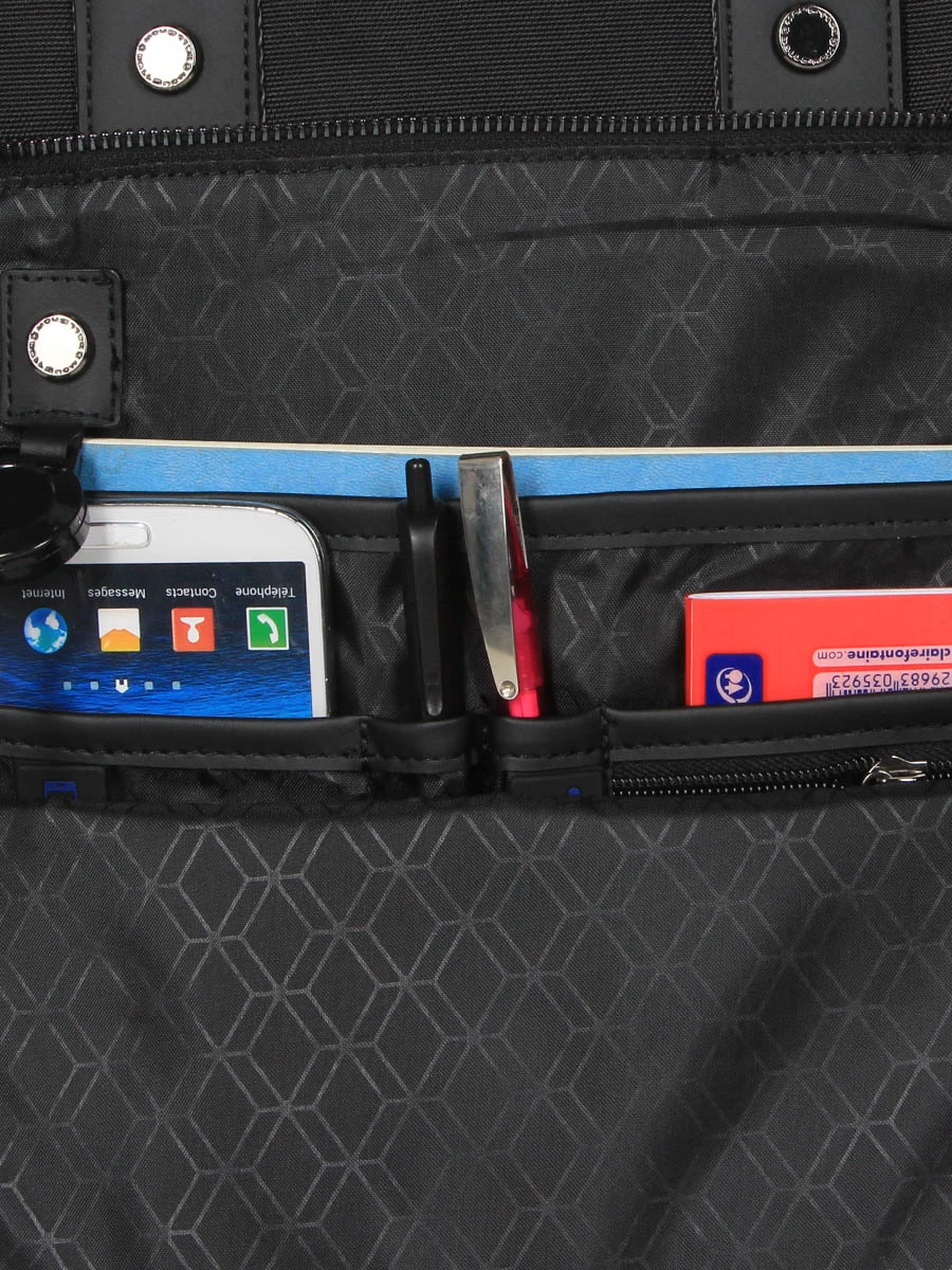 Pour plus de confort, il est possible de le fixer à la poignée télescopique d’une valise en utilisant son passant arrière. Son fond renforcé et sa doublure textile forment un rempart efficace contre l’humidité ambiante.