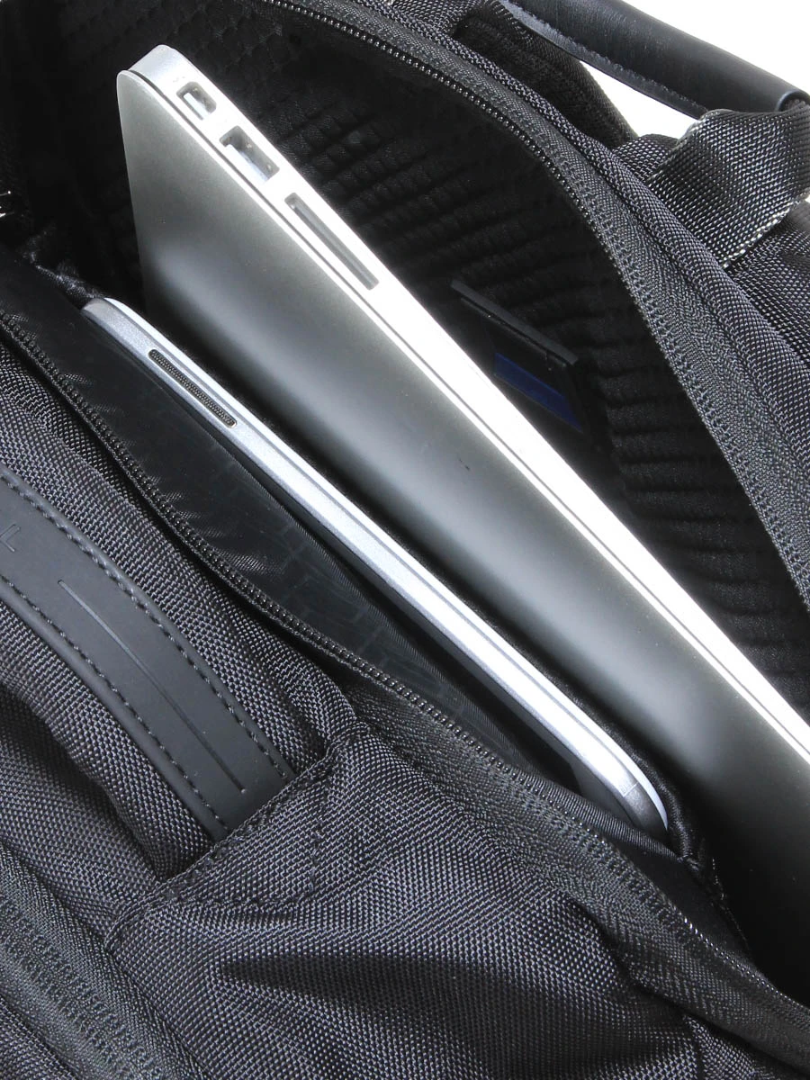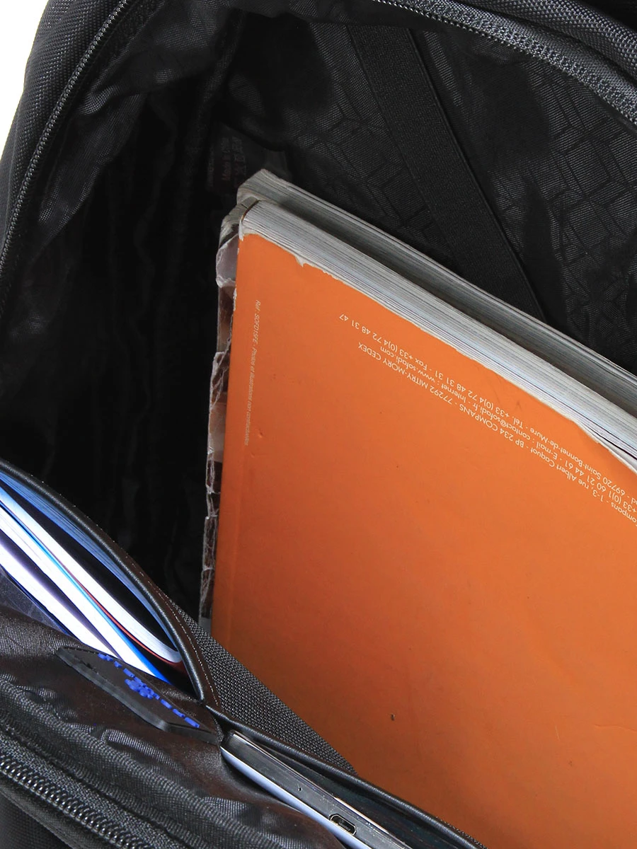 Le sac à dos Snowball Business II USB possède un compartiment arrière intégralement matelassé pouvant accueillir un ordinateur jusqu’à 16 pouces et une tablette (à glisser dans une poche spécifique). Son compartiment avant à soufflet extensible permet de transporter un grand nombre de dossiers ou d’emporter quelques tenues de rechange et un nécessaire de toilette. Dans ce cas, ses 2 sangles élastiques permettent de maintenir les vêtements en place pour éviter les faux plis. Sa poche frontale est pourvue de différents emplacements de rangement pour petites fournitures et d’une attache porte clé pour éviter d’égarer le trousseau de clés au fond du sac. Bouteille d’eau ou parapluie peuvent être rangés dans ses poches latérales.