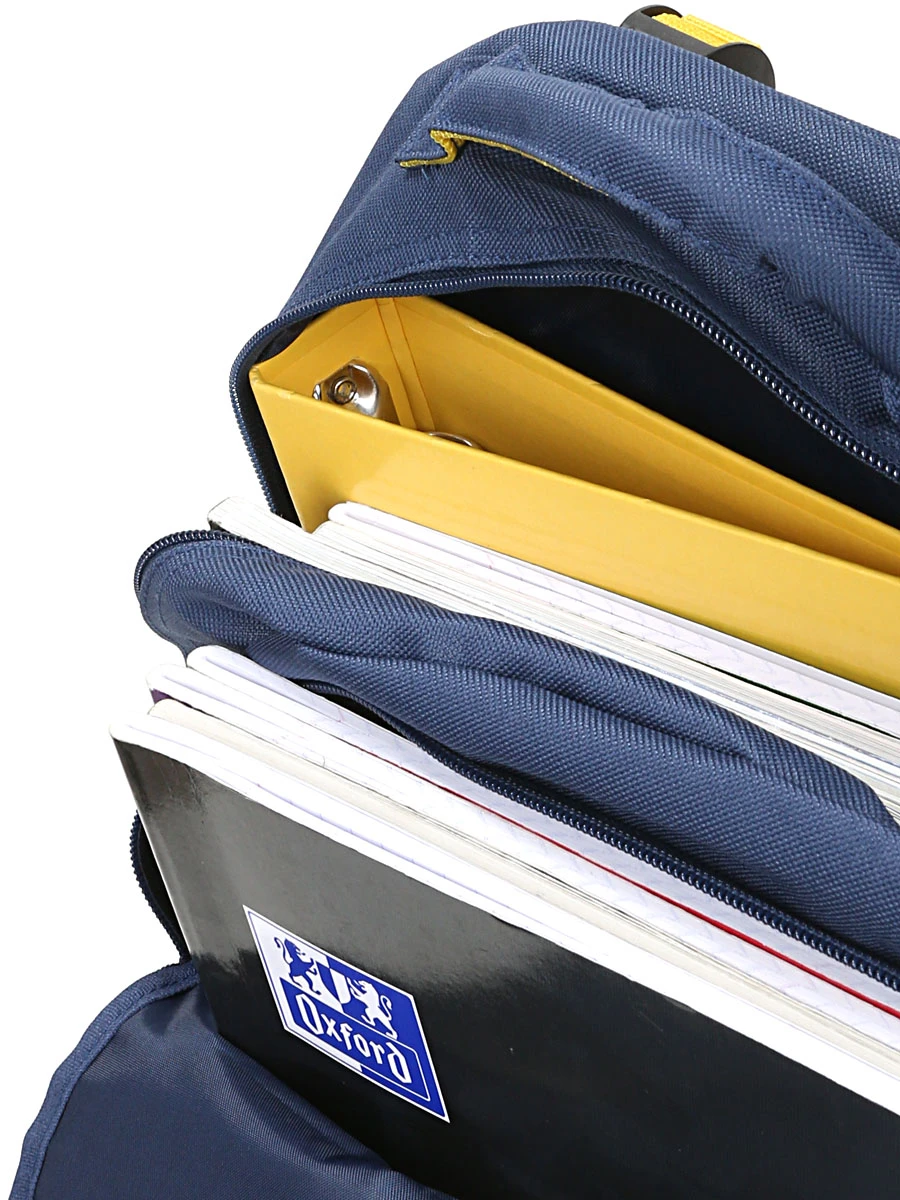 Les différents espaces de rangement doublés du sac à dos collège Philéas Wild Dino Roar prévoient un emplacement pour chaque élément, pour des journées bien organisées. Les manuels, les cahiers et les classeurs de formats A4 et 24 x 32 cm logent dans son compartiment. Le cahier de correspondance, le set de géométrie, la trousse et l’agenda peuvent être placés à part dans la spacieuse poche avant. Le paquet de mouchoirs, le portefeuille et les clefs se glissent dans la plus petite poche frontale. Les petits accessoires sont à l’abri dans la poche plate zippée aménagée dans le compartiment. La gourde et l’en-cas sont quant à eux toujours à portée de main dans les poches ouvertes latérales.
