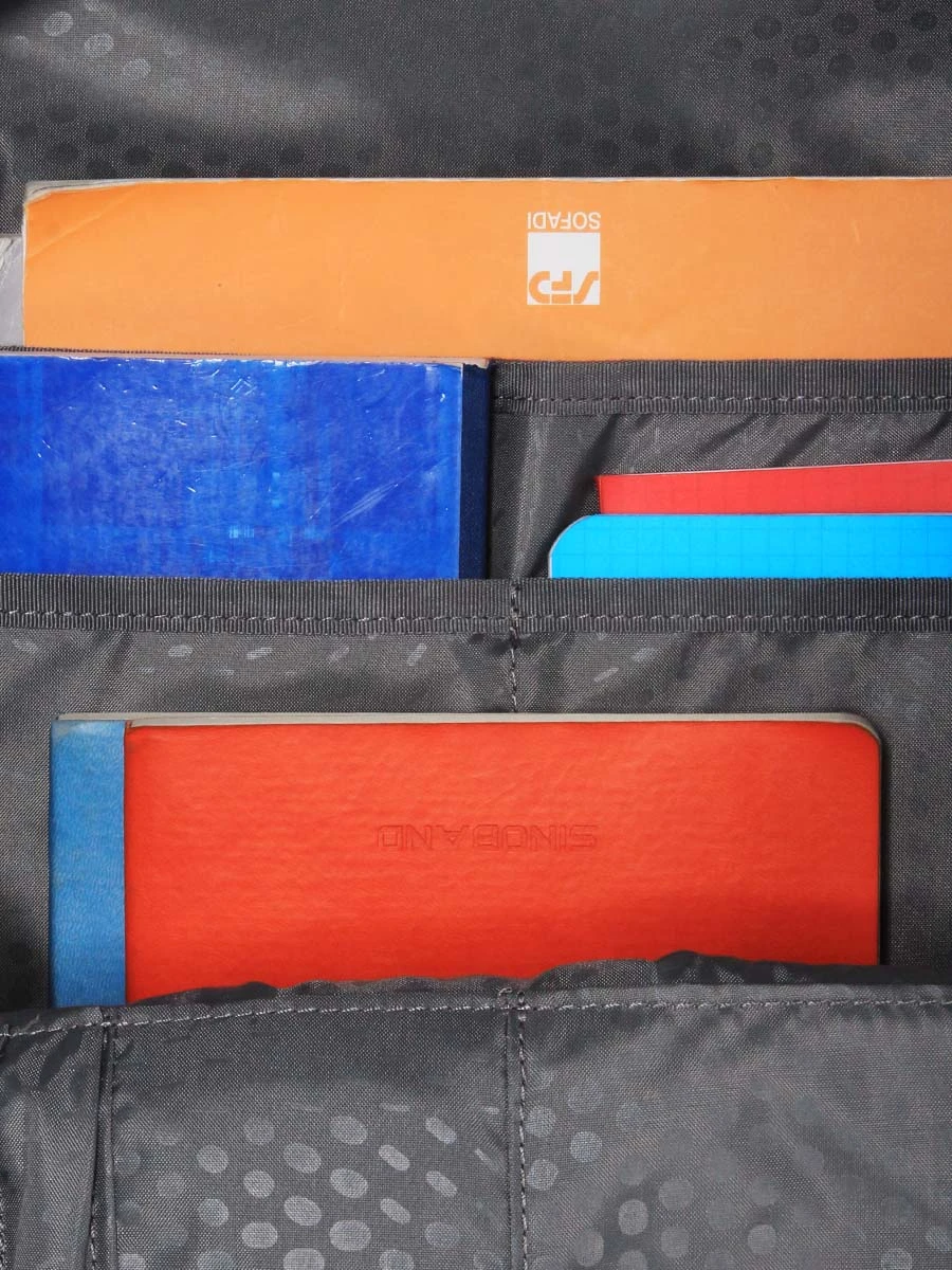 - son compartiment avant pouvant être dédié au transport de documents professionnels et de fournitures en tout genre à glisser dans des poches spécifiques et