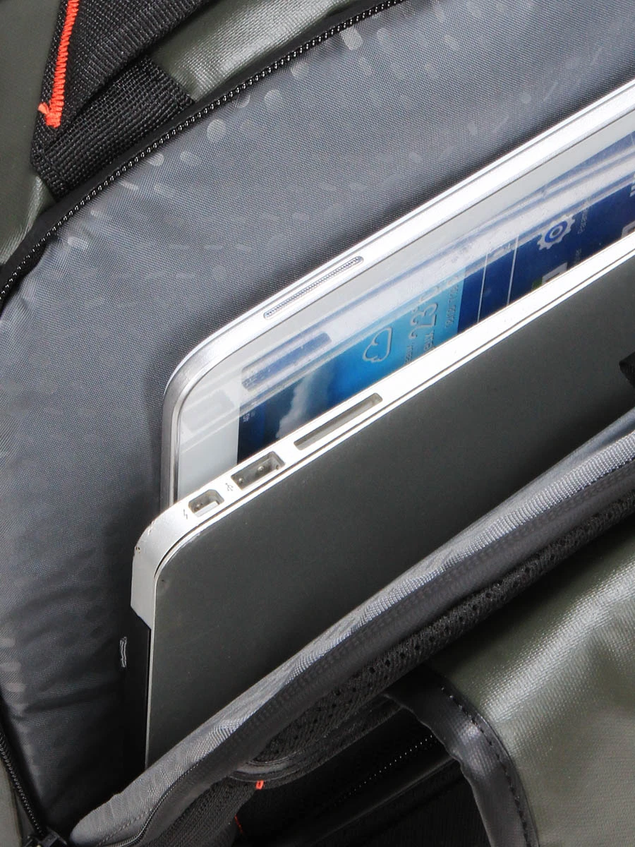 - son compartiment arrière entièrement rembourré pouvant accueillir aussi bien un ordinateur 15.6 pouces qu’une tablette.