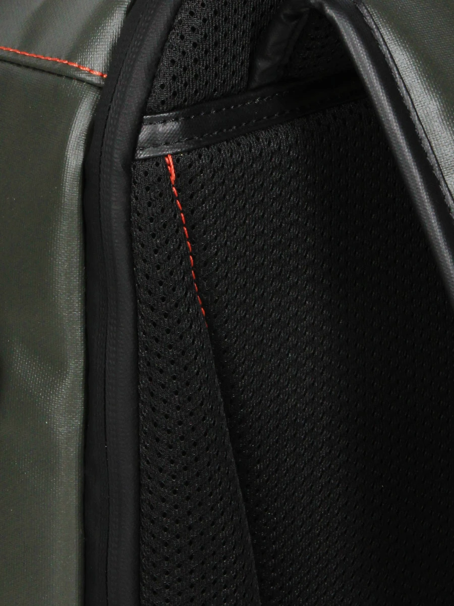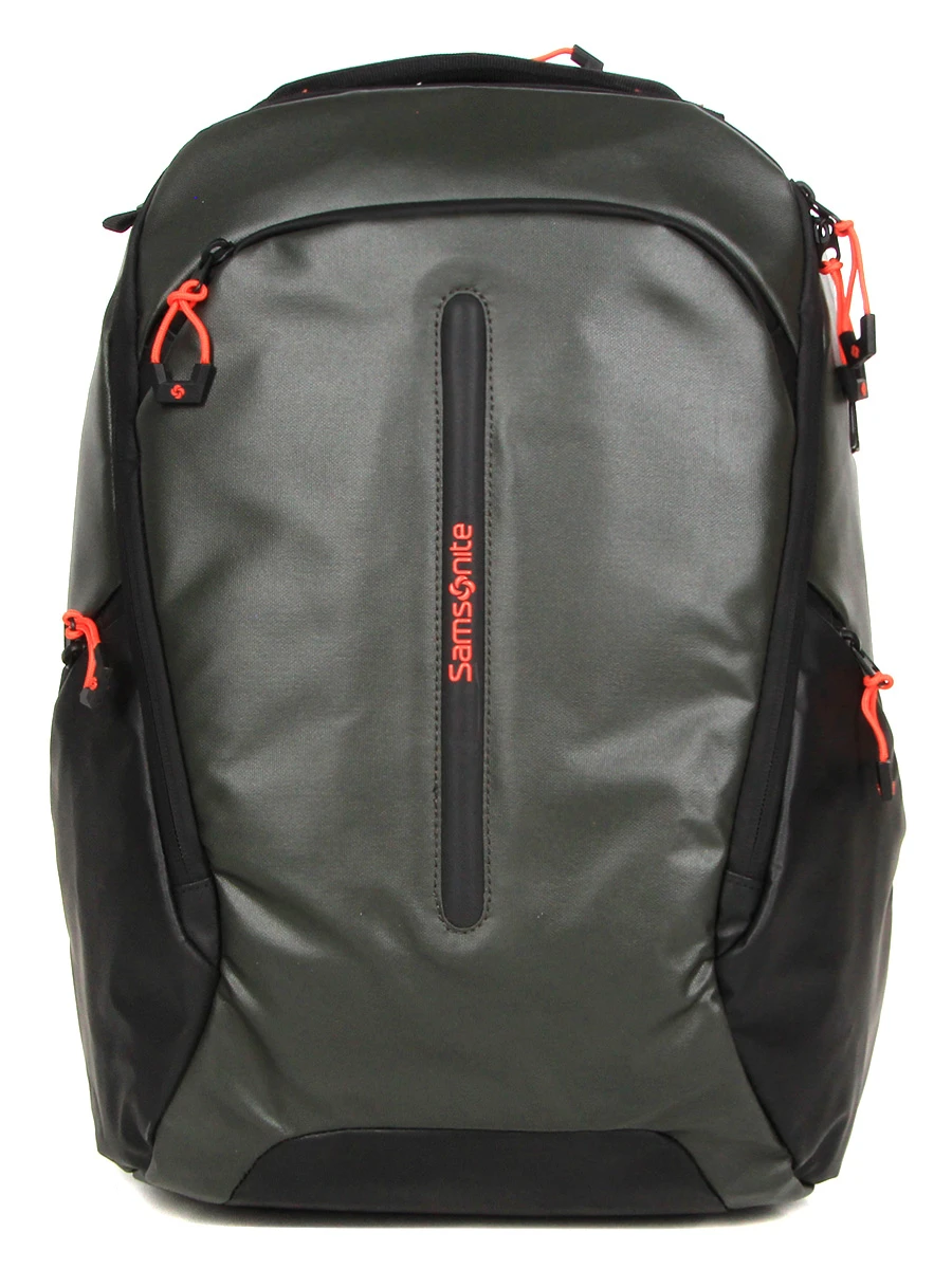 Le sac Samsonite Ecodiver se transporte avec confort sur les épaules grâce à la présence de bretelles moelleuses réglables à taille, d’un épais dossier matelassé et d’une sangle de poitrine réglable pour une meilleure répartition de la charge sur l’ensemble du dos. Pour faciliter sa prise en main, il est pourvu d’une large poignée haute moussée. A l’arrière, un discret passant pour trolley permet de le fixer à la poignée télescopique d’une valise pour des trajets toujours plus agréables. Son fond moussé, ses fermetures à zip inversé et sa doublure textile sont autant de remparts contre l’humidité ambiante. Il est ainsi certain que son contenu restera bien au sec y compris en cas de pluie. Enfin, pour des trajets en sécurité, l’empiècement au niveau de la marque est réalisé dans un matériau réfléchissant.