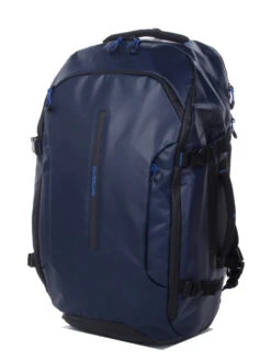Le sac à dos Samsonite Ecodiver Travel M permet aux nomades aventureux de partir pour un séjour d’une semaine avec leur ordinateur et leur tablette. Ceux-ci sont protégés des chocs et des intempéries grâce au fond renforcé, au revêtement en polyester imperméable, aux fermetures à glissière inversée et à la doublure intérieure. Il sécurise aussi son porteur pendant les trajets nocturnes avec ses détails réfléchissants. Ceux-ci, en combinaison avec les sangles de compression, le rendent adapté pour le porter à vélo ou en moto. Conçu en polyester RPET, il est en prime éco-responsable.