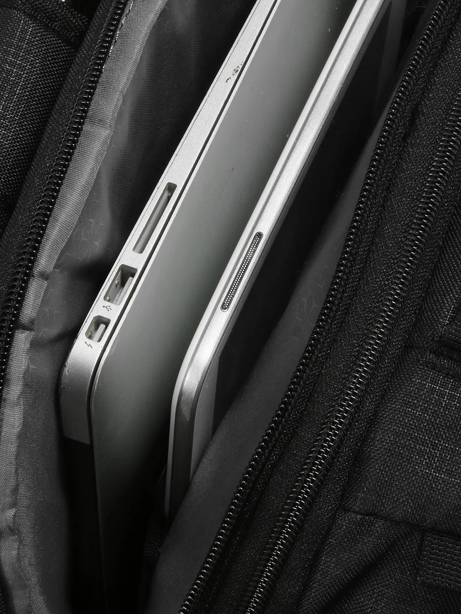 Le compartiment multimédia du sac Samsonite Roader L peut accueillir un ordinateur jusqu’à 17.3 pouces. Il est en outre doté d’une poche matelassée pour tablette. Le compartiment principal est vaste et peut accueillir une multitude de dossiers au format A4, notamment. Une grande poche plate permet en outre de maintenir des documents à la verticale. Le troisième compartiment est parfait pour les accessoires. Il dispose d’un mousqueton pour accrocher les clefs, de deux passants pour stylo et de deux poches plates pensées pour la batterie nomade (non fournie) et le téléphone portable avec sa coque. Un quatrième compartiment se révèle à l’ouverture du soufflet : il est dédié au linge. Son ouverture est très ample à la manière d’une valise. Les tenues de rechange pour deux jours restent en place grâce au plateau zippé en mesh.