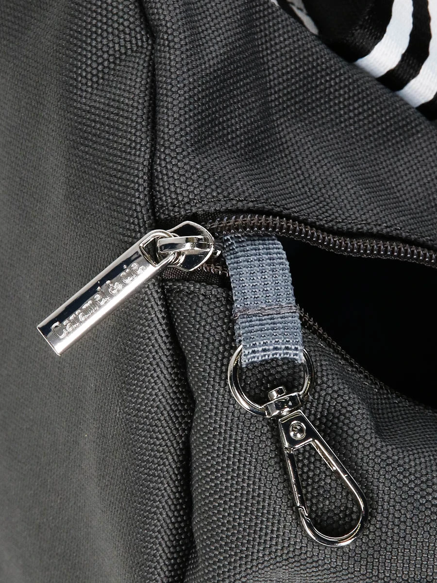 Le sac cabine Caramel & cie. En Vadrouille Le Loup offre un compartiment entièrement doublé pourvu d’une fermeture zippée à double curseur pour faciliter l’accès à son contenu. Sa capacité de 25 L permet d’emporter les tenues de rechange nécessaires pour un déplacement de moins de 2 jours. Il peut également être utilisé pour transporter des affaires de sport. Sa poche intérieure zippée permet de glisser à part le téléphone ou le porte-monnaie, par exemple. Son porte-clé permet quant à lui de garder bien en vue le trousseau de clés de la maison, la clé du cadenas su casier…