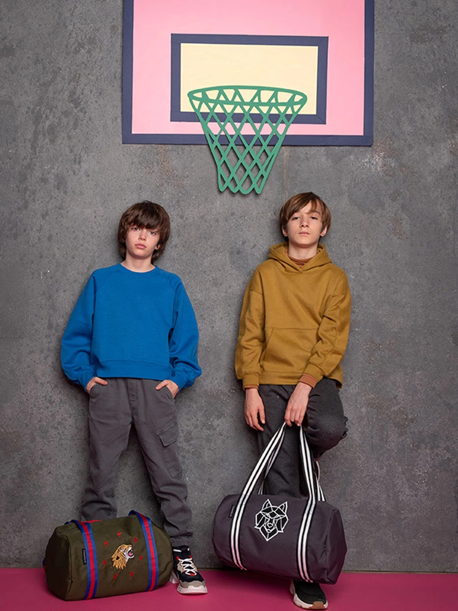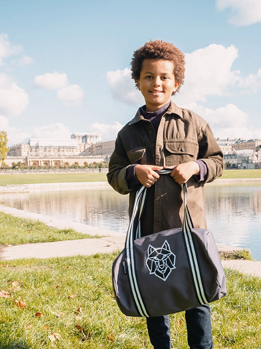 Le sac Caramel & cie. En Vadrouille Le Loup se porte agréablement à la main ou sur l’épaule à l’aide de ses 2 larges poignées en textile sergé. Pour ne pas l’égarer dans les vestiaires, il est doté d’un porte-étiquette personnalisable à l’intérieur de son compartiment. Il est ainsi aisé de retrouver l’identité de son jeune propriétaire.