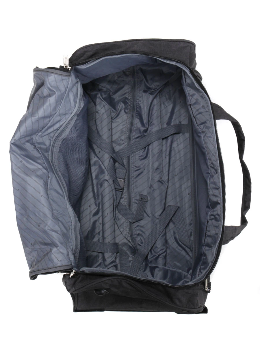 Le compartiment principal du sac de voyage 2 roues Snowball Jean Denim 65 cm vous offre un très beau volume de presque 60L pour ranger l’intégralité des effets personnels que vous souhaitez emporter pour des vacances entre amis ou un séjour en famille. La poche intérieure zippée en mesh vous offre l’occasion de ranger à part vos vêtements délicats, sous-vêtements ou encore accessoires divers. Les vêtements seront parfaitement maintenus à l’aide des sangles ajustables. On trouve à l’extérieur une poche à zip pour les ajouts de dernière minute ou encore vos carte d’embarquement et pièces d’identité. Entièrement doté d’une doublure intérieure, il résiste à l’humidité et à l’usure.