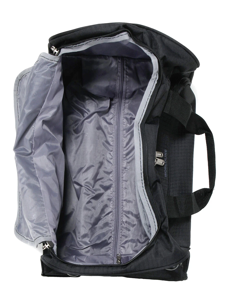 Pour un roulage fluide, le sac de voyage Worldline Hambourg 2.0 est Ă©quipĂ© d’une poignĂ©e tĂ©lescopique Ă position ajustable et de 2 petites roulettes. Quand il est peu lĂ©gĂ©rement charge, il peut ĂŞtre transportĂ© Ă©galement de manière agrĂ©able Ă la main en le saisissant par ses 2 anses munies d’une patte de maintien rembourrĂ©e. Sur le cĂ´tĂ©, une poignĂ©e renforcĂ©e permet une prise en main commode, notamment lorsqu’il s’agit de l’attraper pour le sortir du coffre d’un vĂ©hicule. Enfin, si l’on souhaite sĂ©curiser l’accès Ă son contenu, il est possible de glisser un petit cadenas dans les curseurs percĂ©s de sa fermeture Ă glissière.