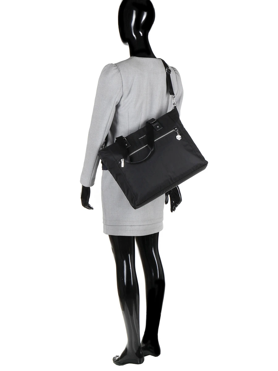 La sac business Hedgren Charm Business Zirconia se tient aisément à la main en le tenant par ses 2 anses garnies en cuir. Sa bandoulière réglable et amovible permet de le porter à l’épaule si l’on préfère. Pour encore plus de praticité, sa poche arrière peut être transformée en passant pour trolley en dézippant ses 2 fermetures éclair.
