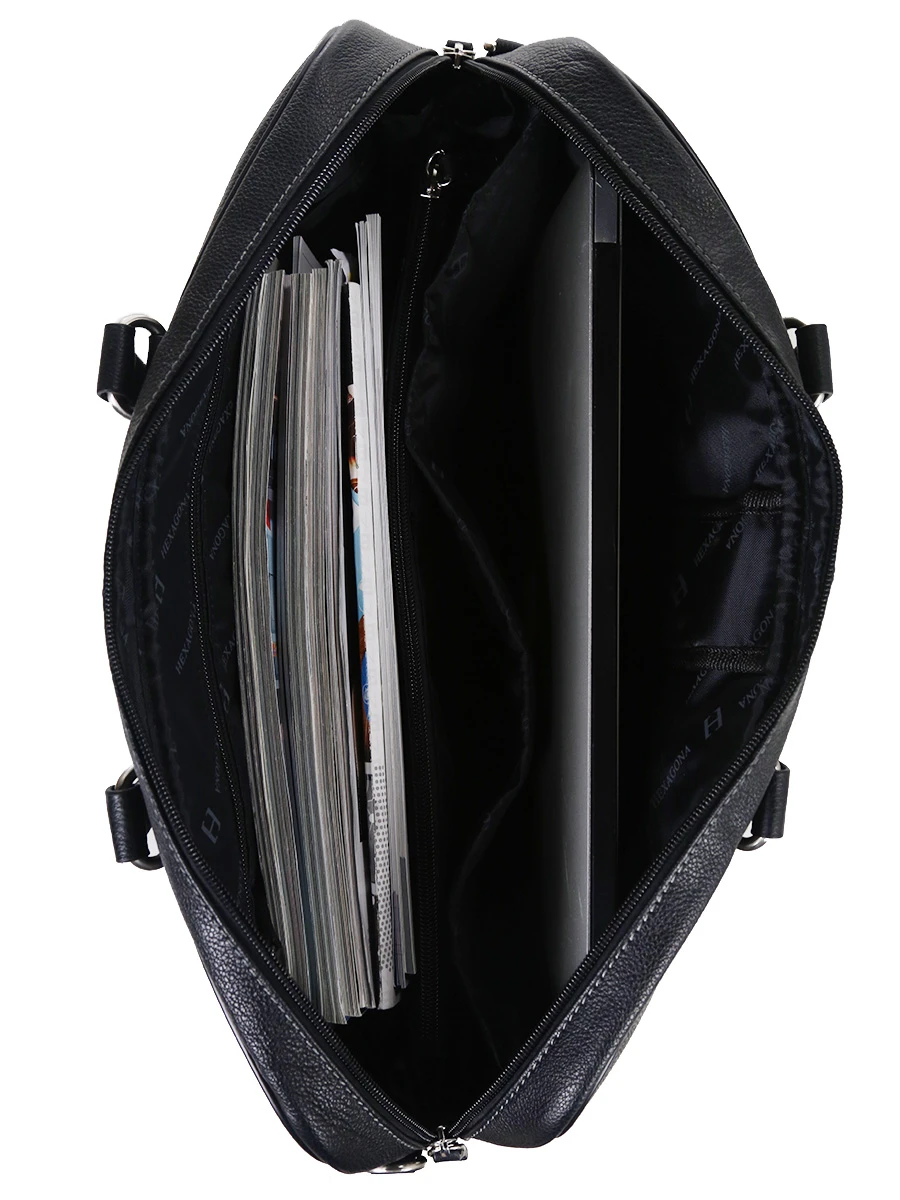Ce sac Hexagona Confort est pourvu d’un compartiment de rangement unique pouvant contenir toutes vos affaires de bureau, des accessoires au matériel électronique en passant par les documents A4. Il comporte une grande poche centrale, diverses poches plates et zippées ainsi qu’un grand espace matelassé compatible avec un ordinateur 17 pouces.