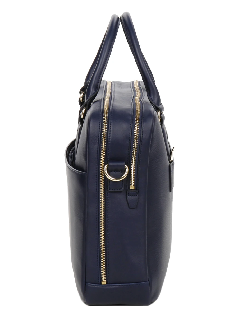 Ainsi, le temps d’une réunion, elle peut simplement être saisie par ses anses garnies en cuir. Pour effectuer le trajet du domicile au travail, elle peut être portée à l’épaule à l’aide de sa sangle renforcée en cuir réglable et détachable. Enfin, lors d’un voyage ou un déplacement professionnel long, elle peut être fixée sur un trolley (d’une valise, d’un pilot case…) pour encore plus de commodité.