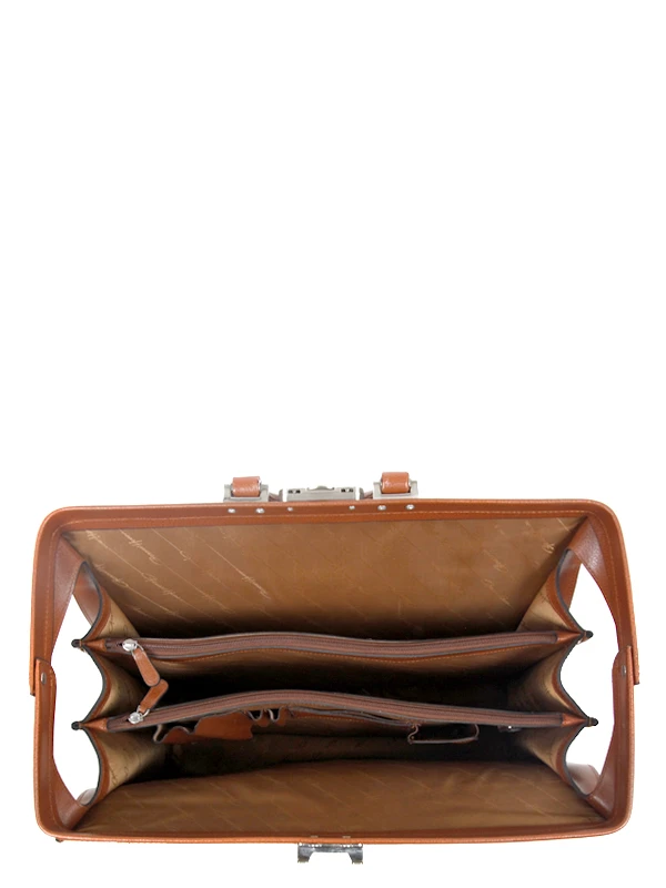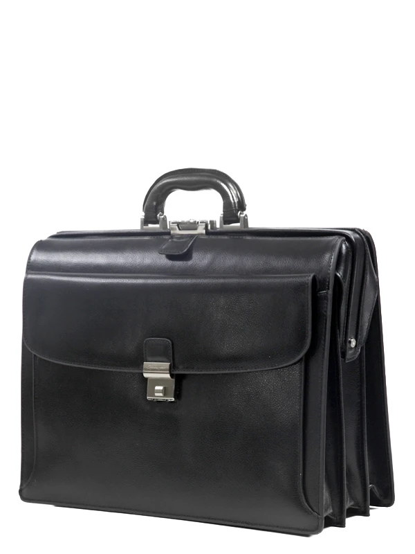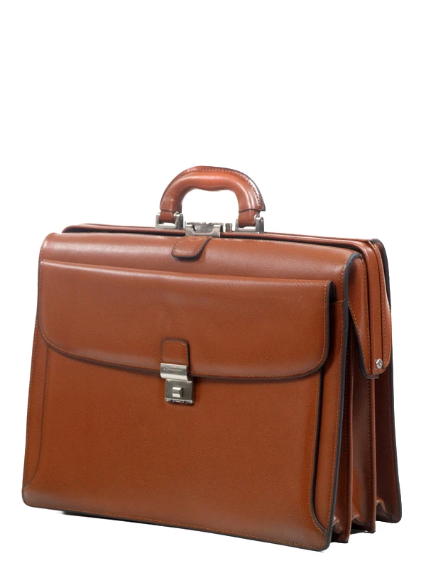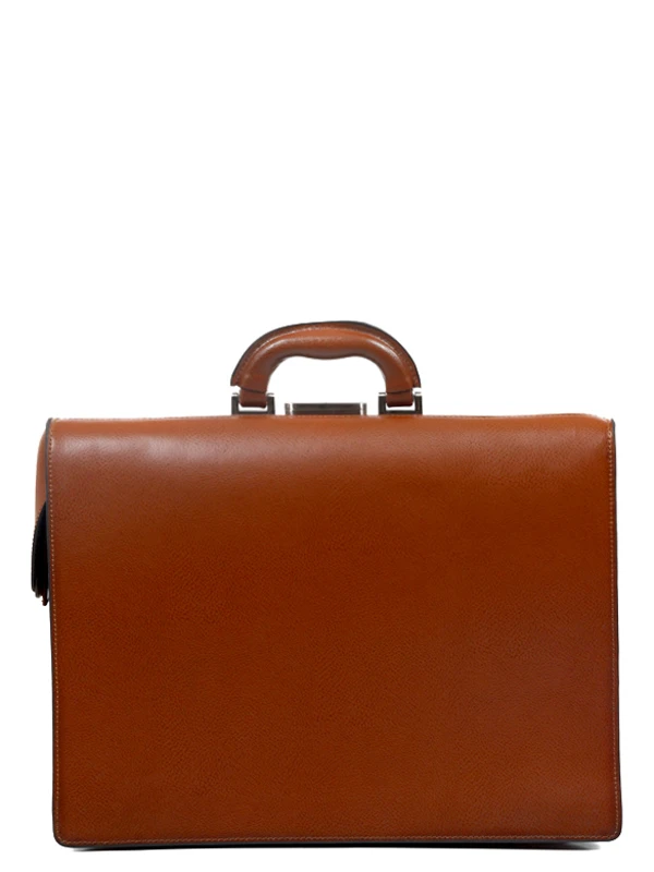 La serviette américaine Gérard Henon Atout est équipée d’une poignée de portage renforcée en cuir. Cette serviette utilise un système de fermeture à attache, sécurisé par une serrure à clé.