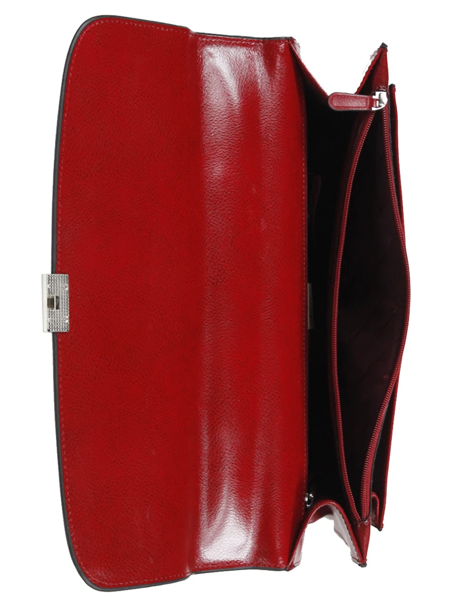 A l’intérieur, la serviette Gérard Henon Atout dispose d’un espace de rangement équipé d’une grande poche zippée, d’une poche pour téléphone portable et de compartiments à stylos. A l’extérieur, on trouve une poche plate sous le rabat et une large poche zippée au dos.