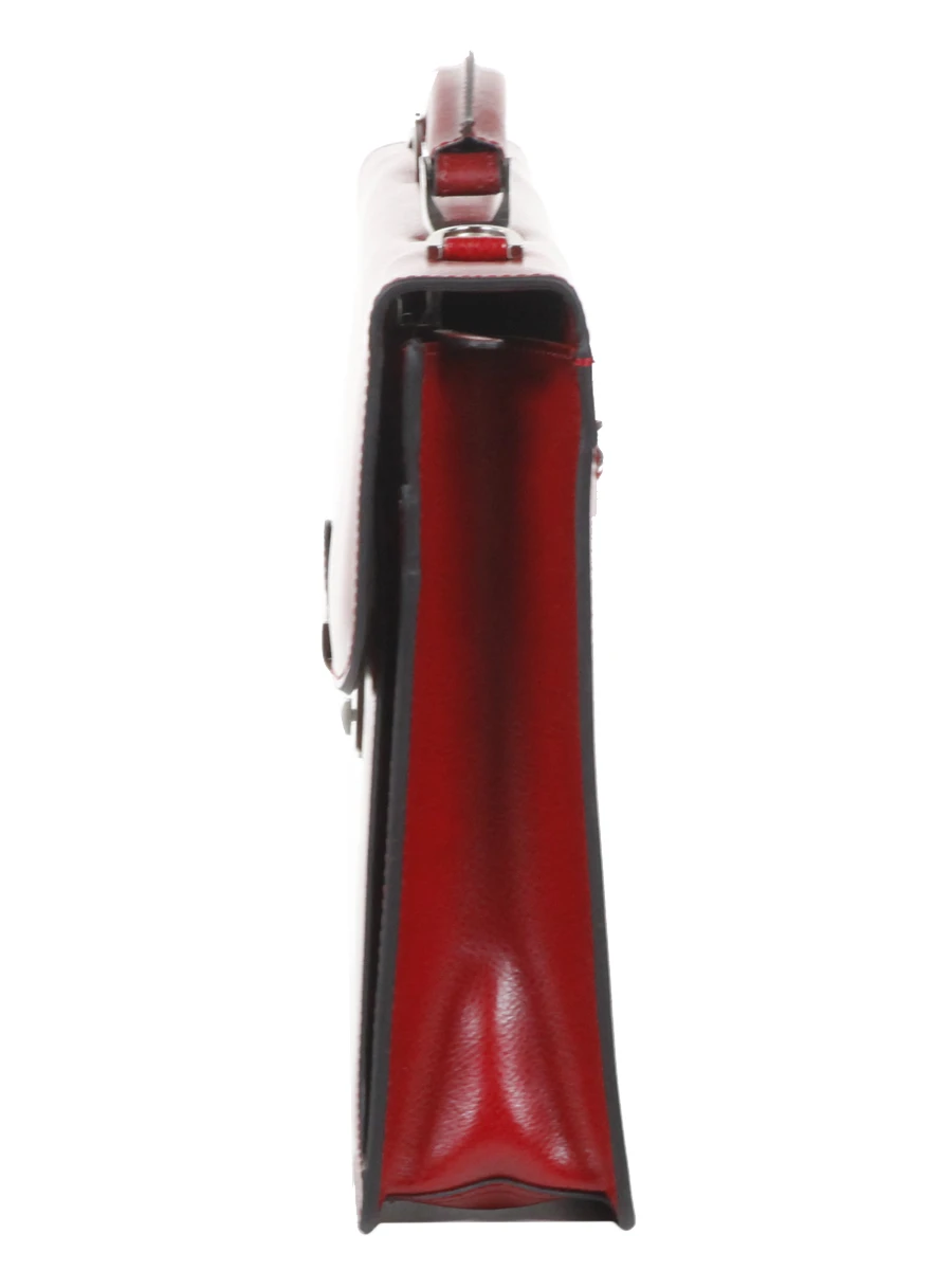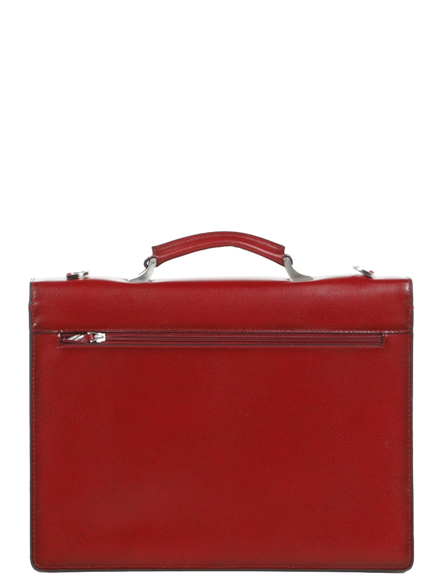 La serviette Gérard Henon Atout 38 cm est équipée d’une bandoulière ajustable et amovible renforcée en cuir, et également d’une poignée de portage garnie en cuir pour la transporter facilement et agréablement.