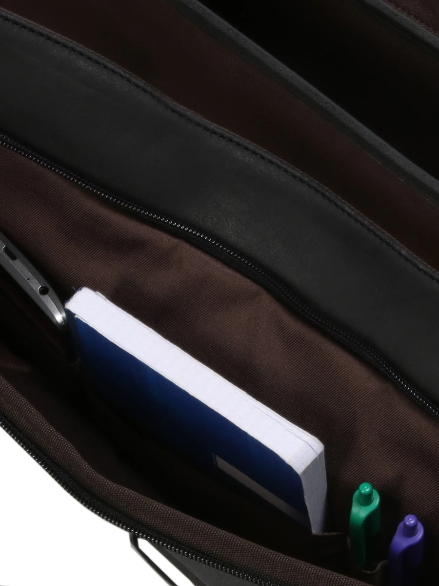 La serviette Hexagona Différence offre 3 compartiments doublés permettant de sérier efficacement les documents de la matinée de ceux nécessaires pour les réunions de l’après-midi, par exemple. Sa grande poche ouverte permet de sérier à part des feuilles volantes ou des petits calepins. Sa poche zippée et ses 2 poches plates permettent de ranger à part un chargeur, un disque dur externe ainsi que des fournitures de bureau, par exemple. Sa poche frontale renferme différentes solutions de rangement pour le téléphone, le trousseau de clés de la maison ou les stylos utiles pour une prise de note rapide.