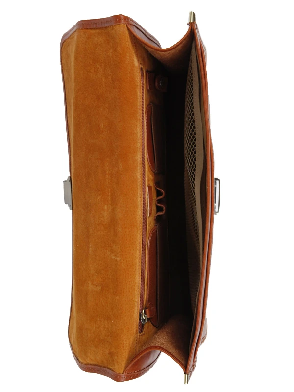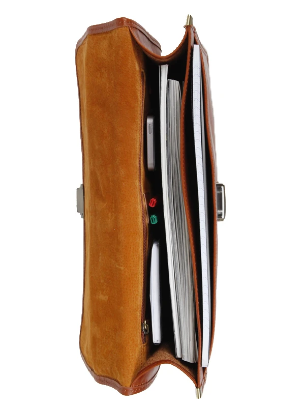 La serviette Katana Premium 38 cm peut contenir jusqu’à 8 litres dans son intérieur entièrement doublé. Le compartiment est doté d’une grande poche en filet, d’une poche zippée, de porte stylos, d’une poche plate et d’une poche pour Smartphone. Il est possible de glisser divers dossiers et documents professionnels et de les transporter sans effort. Côté extérieur, on trouve une poche plate sous le rabat (avec emplacements pour cartes de visite), ainsi qu’une poche arrière zippée.