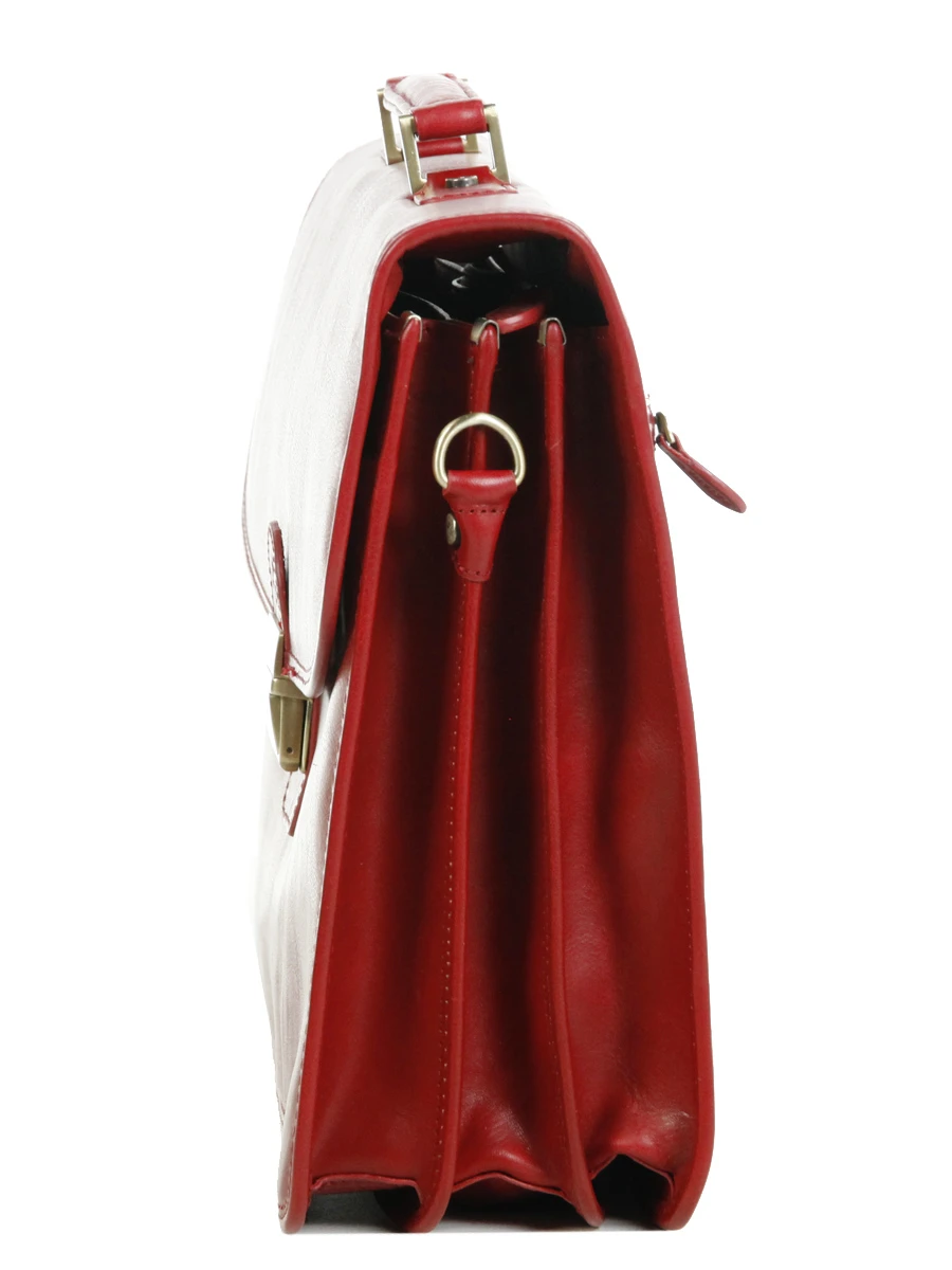 Ce porte documents Katana Premium se ferme à l’aide d’une belle attache métallique, sécurisée par une serrure à clé. Elle peut se transporter de deux façons : soit à la main, grâce à sa poignée de portage tout en cuir, soit sur l’épaule, à l’aide de sa bandoulière ajustable, amovible et renforcée en cuir.