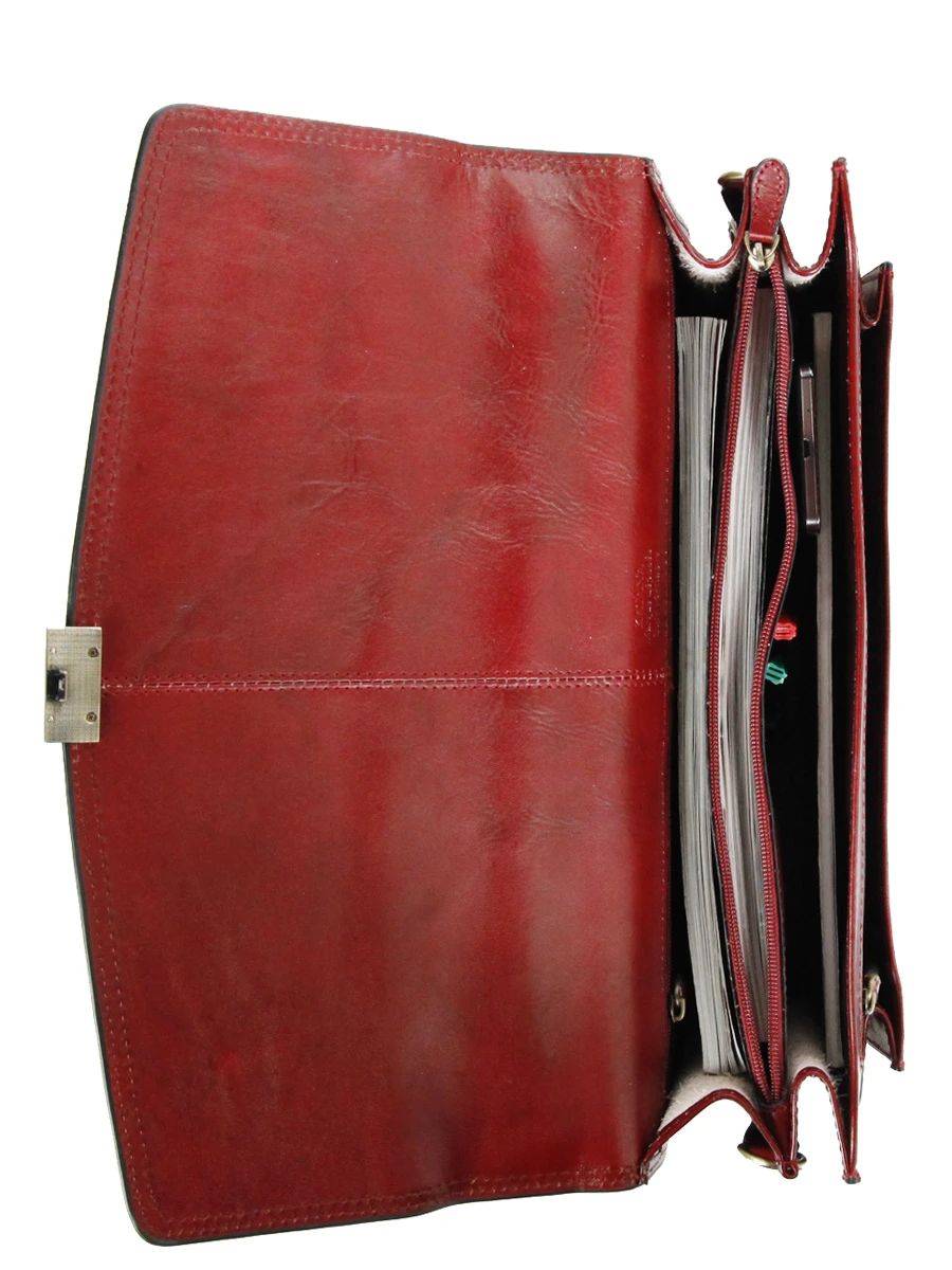 Ce porte documents en cuir Katana Specialist se ferme à l’aide d’un rabat muni d’une attache. Pour plus de sécurité, celle-ci est dotée d’une serrure à clé (2 chiffres). A l’extérieur, de multiples poches viennent compléter la fonctionnalité de ce sac business : une poche arrière zippée pleine longueur et deux poches frontales, situées sous le rabat (une poche plate et une poche zippée).