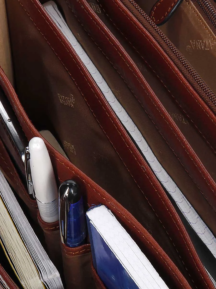 La serviette Katana Specialist 44 cm – 4 soufflets associe un grand format à un agencement très fonctionnel pour permettre aux professionnels d’emporter avec organisation un grand nombre de mémos. Son design vintage est mis en valeur par sa belle fabrication en cuir de vachette. Son style intemporel se marie avec élégance aux tenues les plus habillées. Sa fermeture sécurisée permet en prime de conserver les informations de travail sensibles à l’abri des mains indiscrètes.