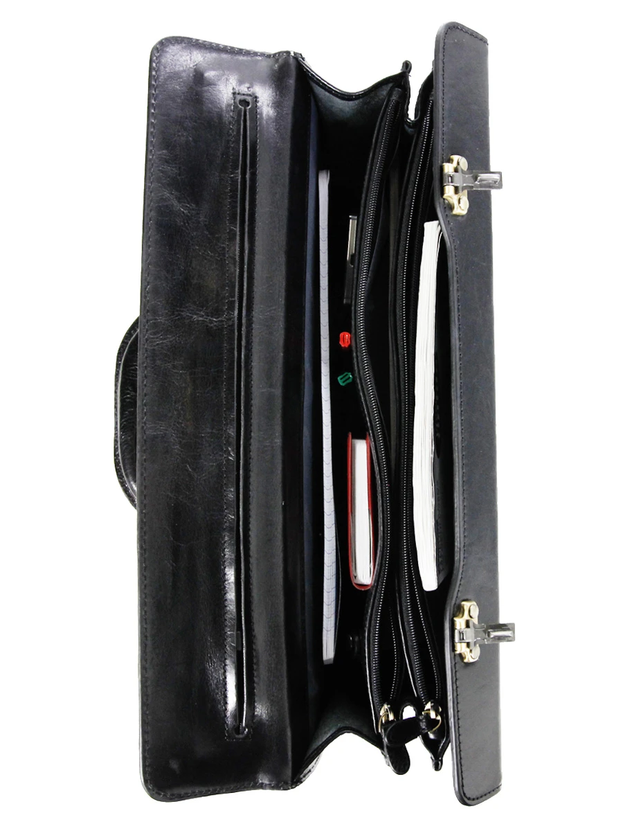 Ce cartable Katana Specialist se ferme à l’aide d’attaches métalliques, sécurisées par 3 serrures à code. A l’intérieur, il dispose de 3 soufflets de rangement doublés et bien organisés. Le premier espace de rangement est vide et doté d’une poche séparatrice zippée, tout comme le deuxième. Le troisième et dernier compartiment offre, quant à lui, une poche PDA, des porte stylos, un porte clés en cuir et une poche plate pour les accessoires.