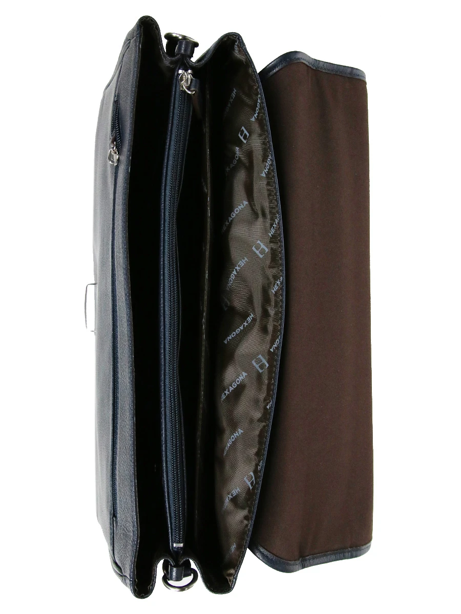 La serviette Hexagona Confort est munie d’une poignĂ©e garnie en cuir pour une prise en main agrĂ©able. Elle est Ă©galement Ă©quipĂ©e d’une sangle d’Ă©paule ajustable et amovible avec renfort en cuir, ainsi que d’une poche arrière pouvant faire office de passant pour trolley. Elle peut donc se dĂ©placer sans efforts au dessus d’une valise ou d’un pilot case, par exemple.