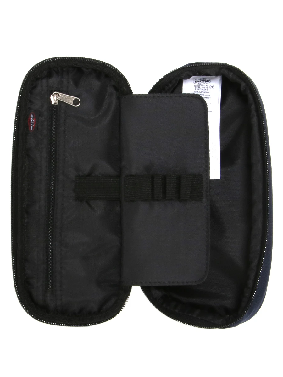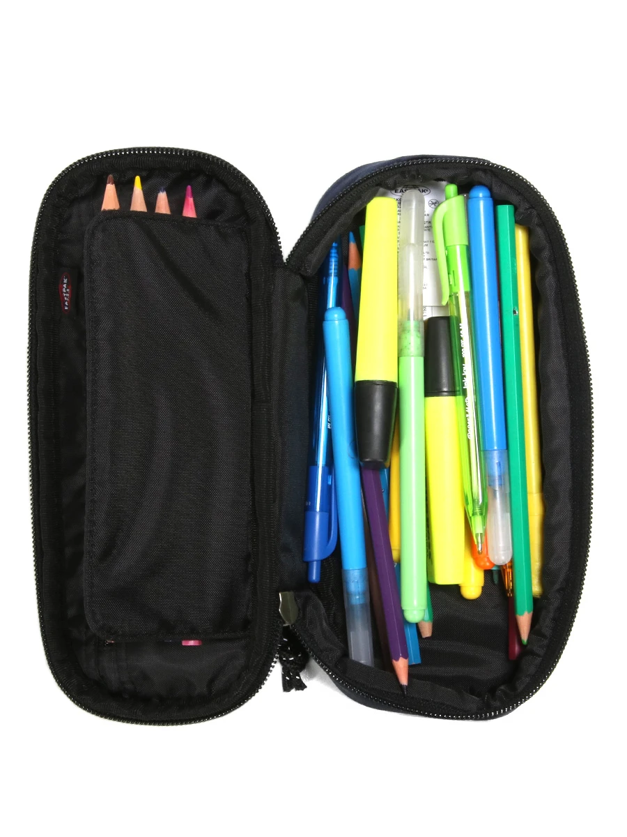 Cette trousse scolaire Eastpak est composée d’un compartiment zippé spacieux, dans lequel se trouvent une doublure protectrice, un rabat avec passants pour maintenir quelques crayons et une poche à zip, pouvant accueillir des petits accessoires comme une gomme et une colle.