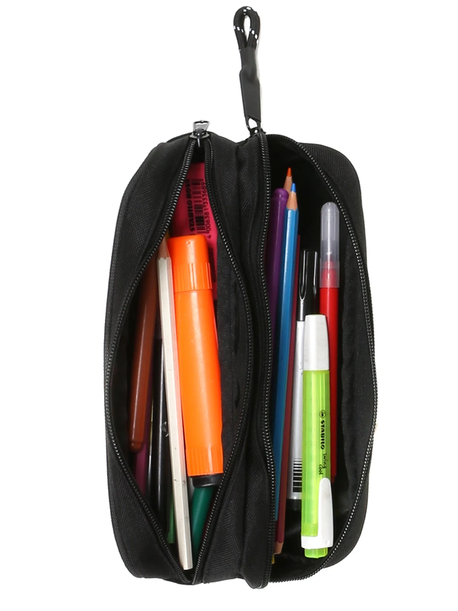 Pour un rangement soigné des stylos, la trousse Kaporal Blue dispose de 2 compartiments zippés. Il est ainsi possible de sérier, d’une part, crayons de couleur et feutres et, d’autre part stylo plume, effaceur et crayon de papier, par exemple. Si elle vient à être oubliée sur un pupitre en classe, son porte étiquette permet de retrouver aisément l’identité de son jeune propriétaire étourdi.