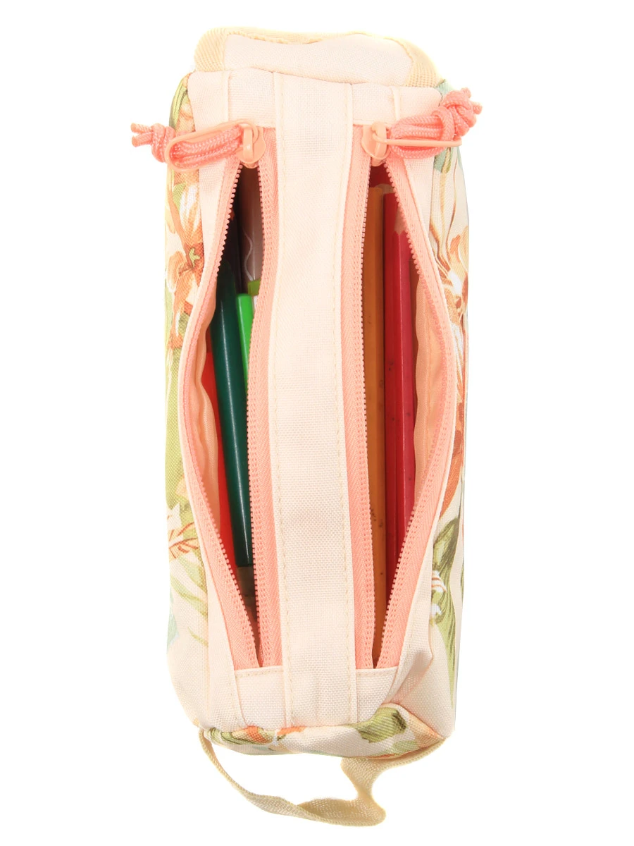 La doublure intérieure de la trousse girly Rip Curl Sunset Waves permet de protéger son superbe motif en cas de fuite d’encre. Ses deux compartiments offrent la possibilité de trier les fournitures par type ou par taille. A l’extérieur, une petite poche permet de garder des petits accessoires comme la gomme en accès rapide. Sa poignée de portage permet en outre de l’attraper rapidement, ce qui s’avère appréciable les matins ou le réveil est en panne !