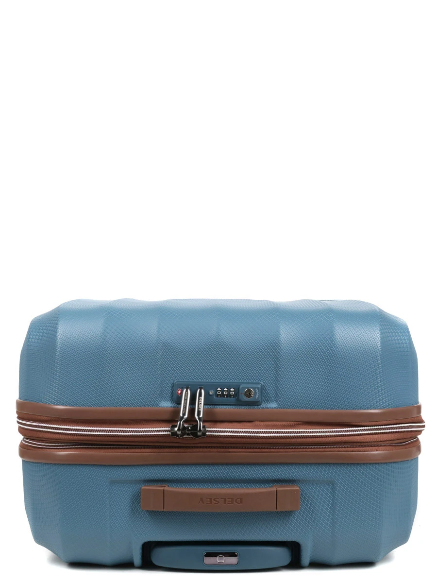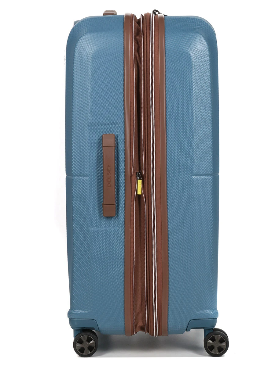 La valise Delsey St Tropez 76.5 cm mise sur une allure chic alliant des coloris Ă©lĂ©gants Ă des finitions couleur cuir et des dĂ©tails en simili cuir pour un raffinement dans les moindres dĂ©tails. Son style unique est loin d’ĂŞtre son seul atout. Elle est Ă©galement extrĂŞmement robuste en raison de sa conception soignĂ©e en polycarbonate – garantie 10 ans par la marque. Son agencement interne astucieux et son système de roulage fluide sont 2 autres de ses atouts indĂ©niables. Spacieuse, elle est adaptĂ©e pour de longues vacances, des voyages au bout du monde ou pour emporter les affaires de toute la famille. Au retour du voyage, si le manque de place se fait sentir : pas de panique ! Son soufflet zippĂ© permet de libĂ©rer un espace de stockage de 10 L supplĂ©mentaire.