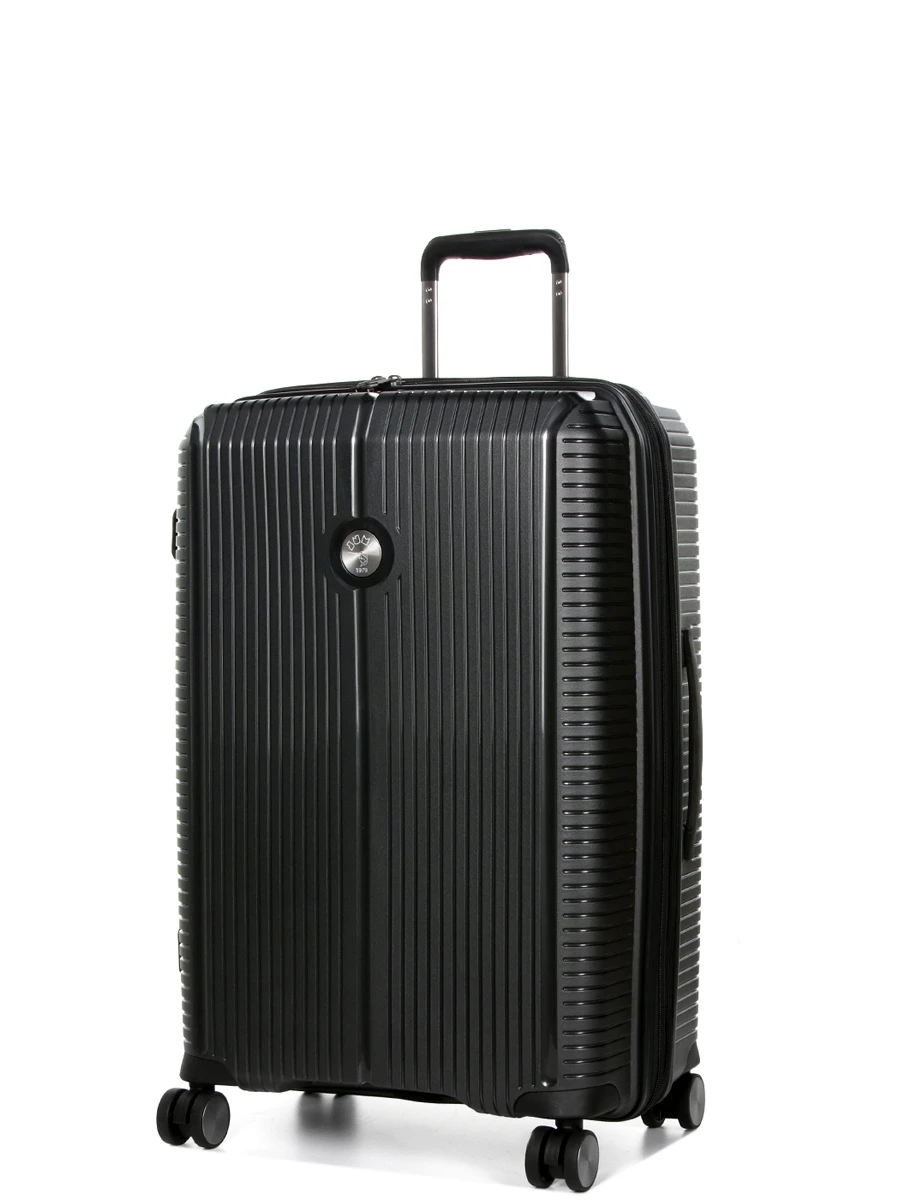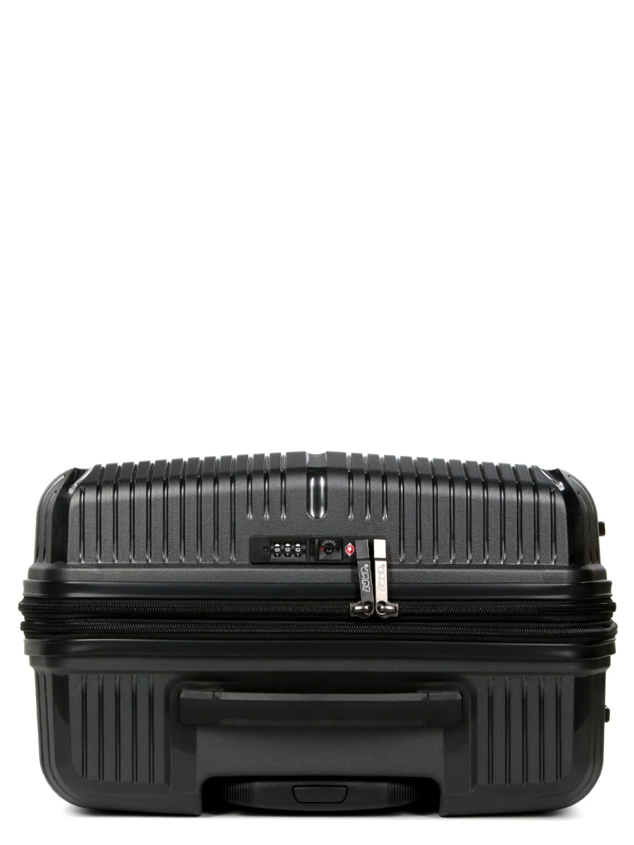 La valise Jump Sondo 66 cm ne fait aucune concession entre robustesse, maniabilité et allure élégante. Sa coque en polypropylène est déclinée dans différents coloris raffinés pouvant convenir aux goûts et aux préférences de chacun. Avec sa capacité de 63 L, elle convient pour des séjours de moins de 3 semaines. Pas de panique, si l’on vient à manquer de place, il suffit de dézipper son soufflet pour libérer un espace de stockage de 9 L supplémentaires ! Un système de roulage fluide et un agencement astucieux sont également au rendez-vous pour des déplacements placés sous le signe du confort et de l’organisation.