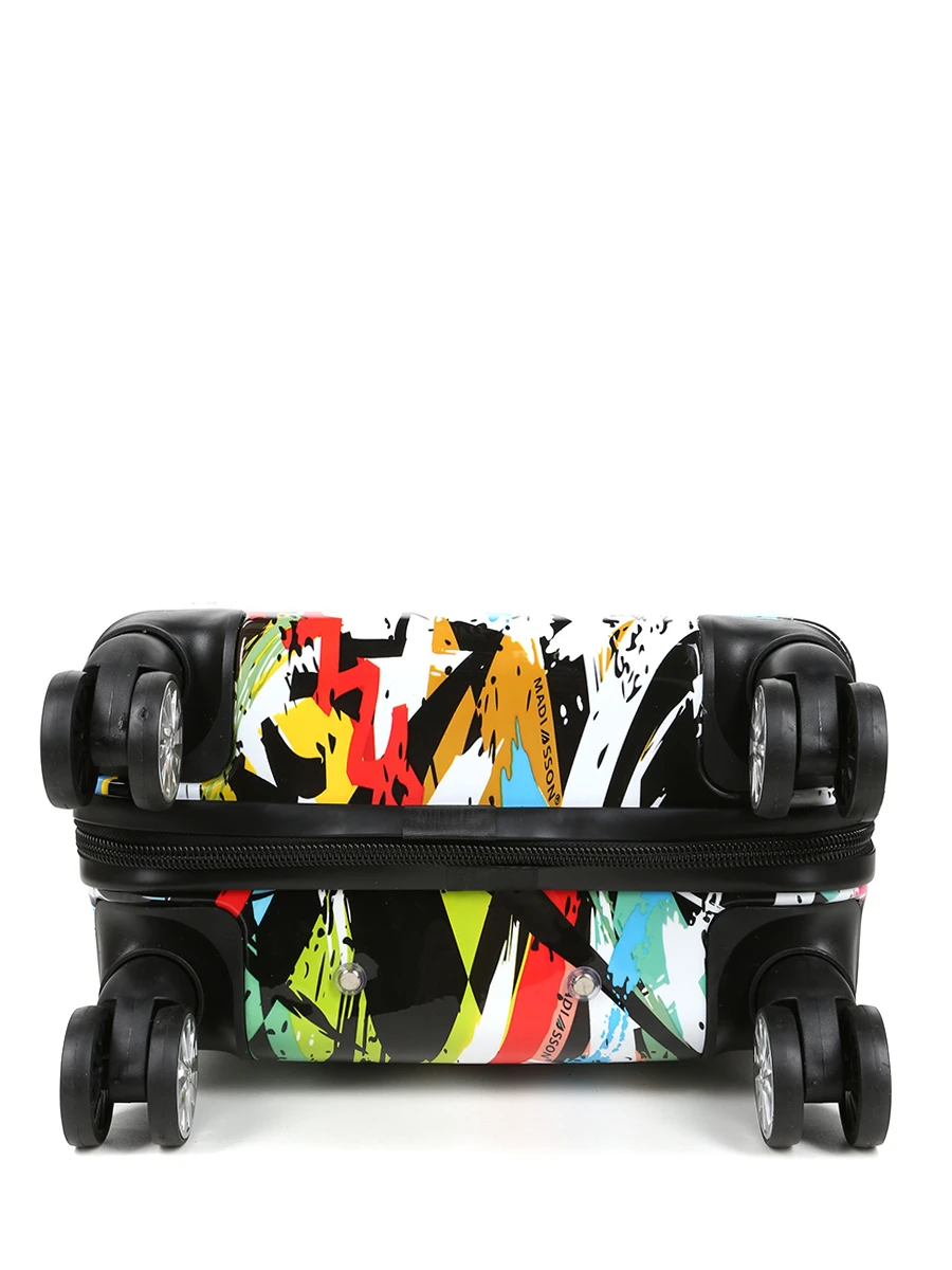 La valise Madisson Splash 55 cm assume un style original qui se distingue des designs unis les plus traditionnels : son revĂŞtement colorĂ© Ă©voquant une toile d’art contemporain a le mĂ©rite de ne pas se confondre avec d’autres lorsque l’on doit la rĂ©cupĂ©rer sur le porte-bagages. Elle est d’un gabarit parfait pour les sĂ©jours de moins d’une semaine et compatible avec les normes cabine de toutes les compagnies aĂ©riennes (Air France, Ryanair, EasyJet). CĂ´tĂ© confort Ă©galement, elle marque des points avec la lĂ©gèretĂ© de sa coque en ABS et polycarbonate et son système de roulage qui facilite les dĂ©placements. Enfin, tous ces atouts sont accessibles Ă tous les budgets grâce Ă son prix modique.