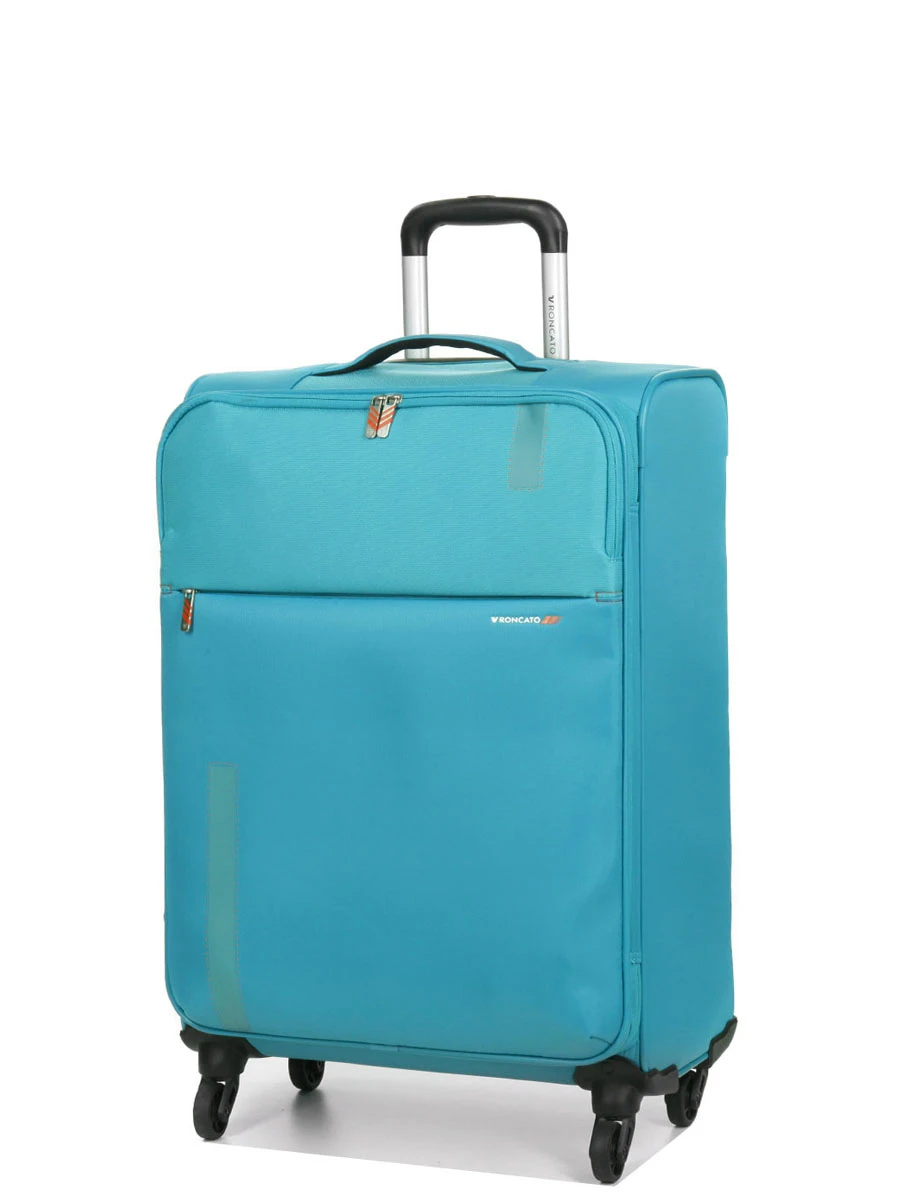 La valise extensible 4 roues Roncato Speed est dotée de deux compartiments séparés par une cloison zippée souple. Le compartiment supérieur est parfait pour séparer les sous-vêtements du reste des habits qui trouvent alors leur place dans le grand compartiment inférieur. Celui-ci comporte en outre quatre sangles ajustables pour maintenir les tenues si soigneusement pliées. Sur l’extérieur, une petite poche frontale semble parfaite pour un petit kit de toilette à utiliser pendant les correspondances. En dessous, une seconde poche, plus grande, peut accueillir plusieurs livres ou le reste du nécessaire de toilette par exemple.