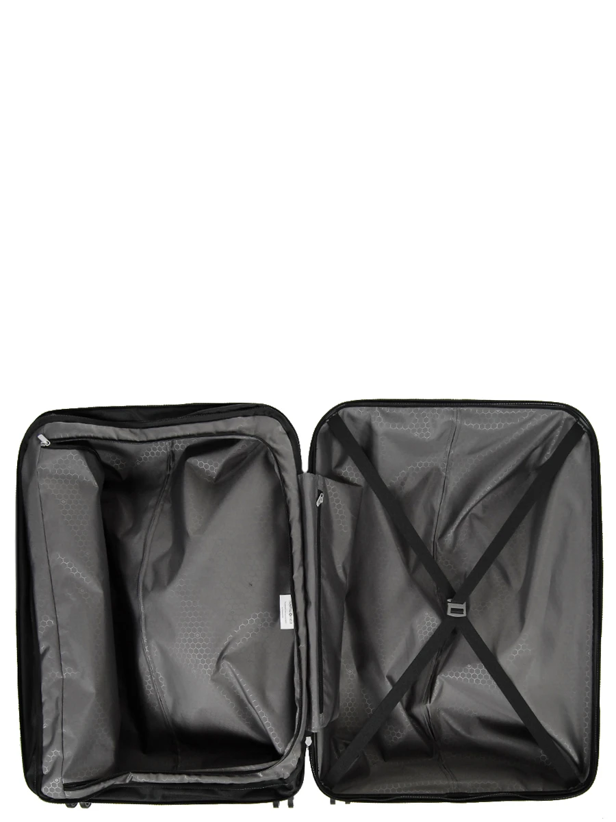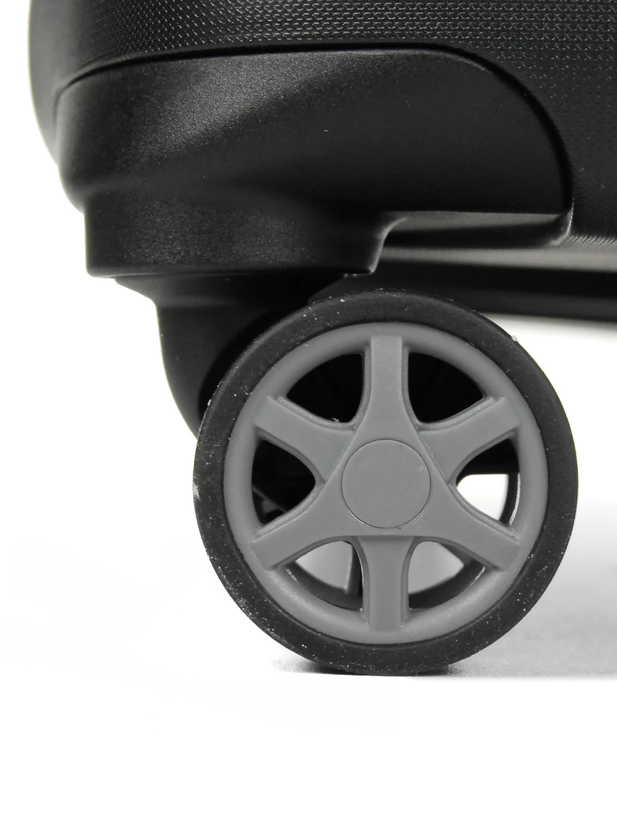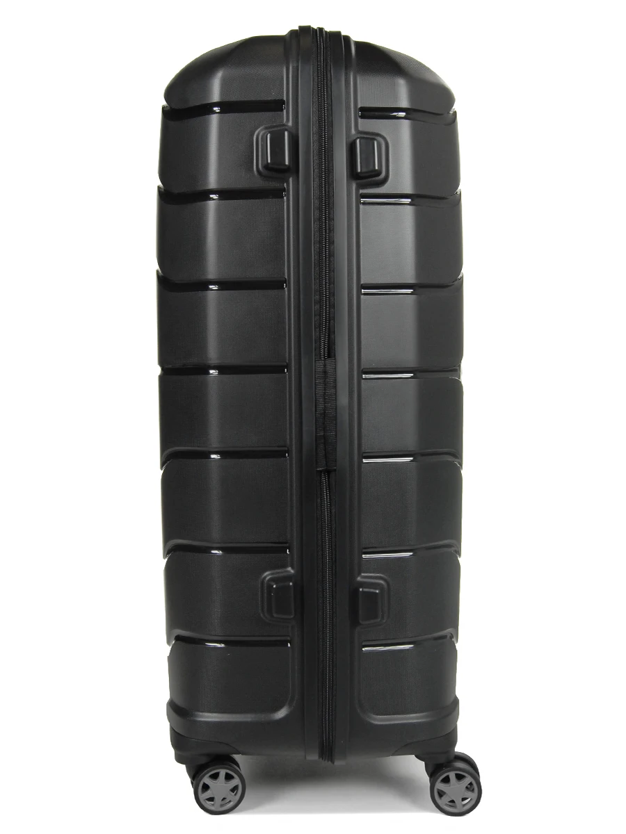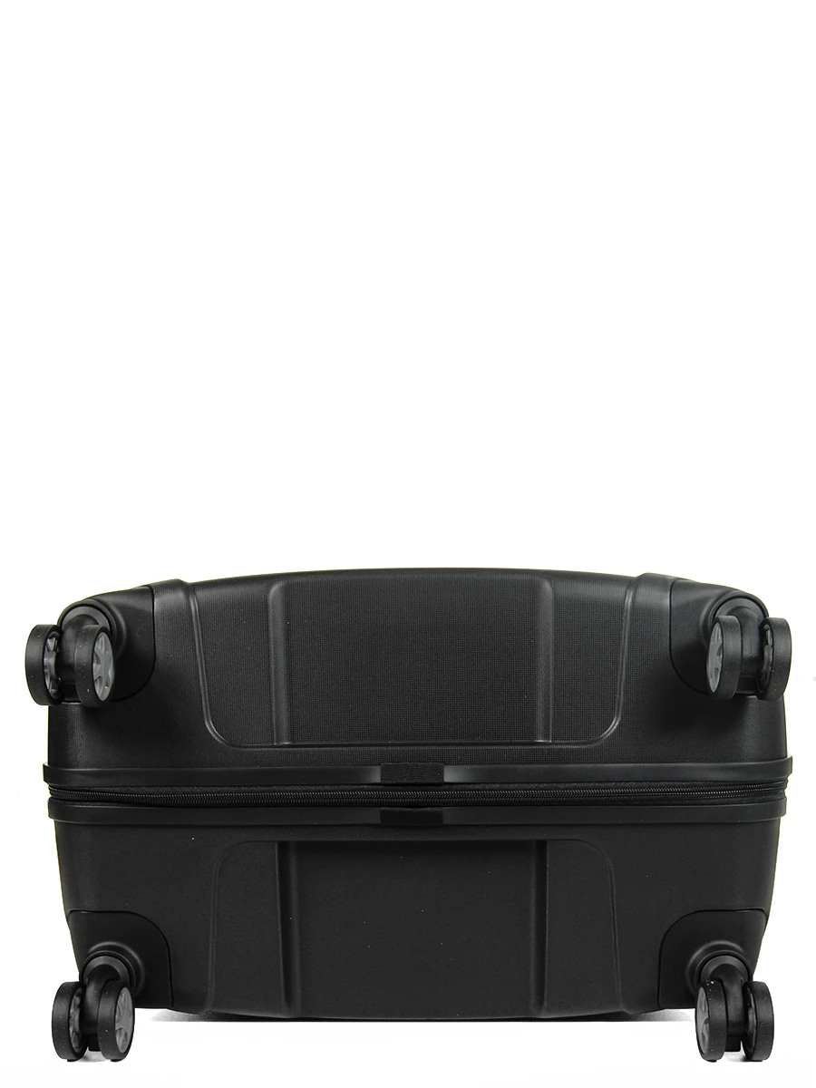 La valise Flux 75 cm se manœuvre très facilement à travers la foule grâce à ses 4 doubles roulettes rotatives à 360° et sa poignée télescopique ajustable. Elle est aussi munie de 2 poignées de portage renforcées pour une prise en main agréable et de renforts de protection latéraux servant à amortir les chocs.