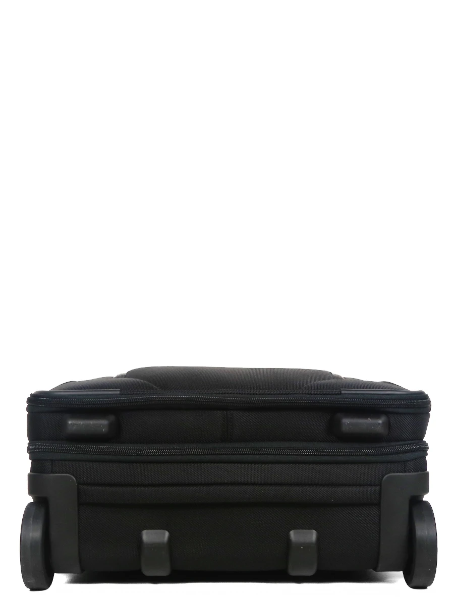 La valise 2 roues Victorinox Lexicon 2.0 est tout aussi bien pensée du côté extérieur. Elle se compose de 2 poches avant verticales et d’une poche frontale organiseur. Celle-ci permet de garder son matériel informatique sous la main puisqu’elle contient notamment une poche matelassée pour ordinateur 13 pouces, ainsi qu’une poche pour couteau suisse, une poche pour les câbles d’alimentation et une poche à zip.