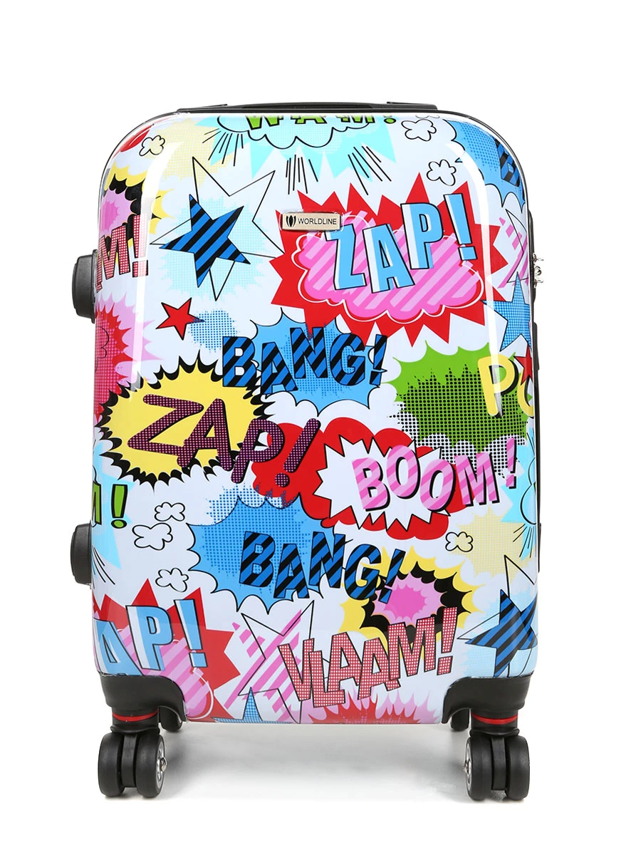 La valise Worldline Boom 54 cm est une explosion de bonne humeur avec ses bulles colorées rappelant l’univers des comics. Le temps d’un week-end, elle permet d’emporter avec confort tenues de rechange, trousse de toilette et autres indispensables au bon déroulement du séjour. Sa coque légère en ABS et polycarbonate est pourvue de renforts latéraux rigides pour une meilleure protection contre les chocs. Son petit gabarit est accepté en cabine sur de nombreux vols (notamment EasyJet et Ryanair). Son petit prix est un autre de ses atouts indéniables.